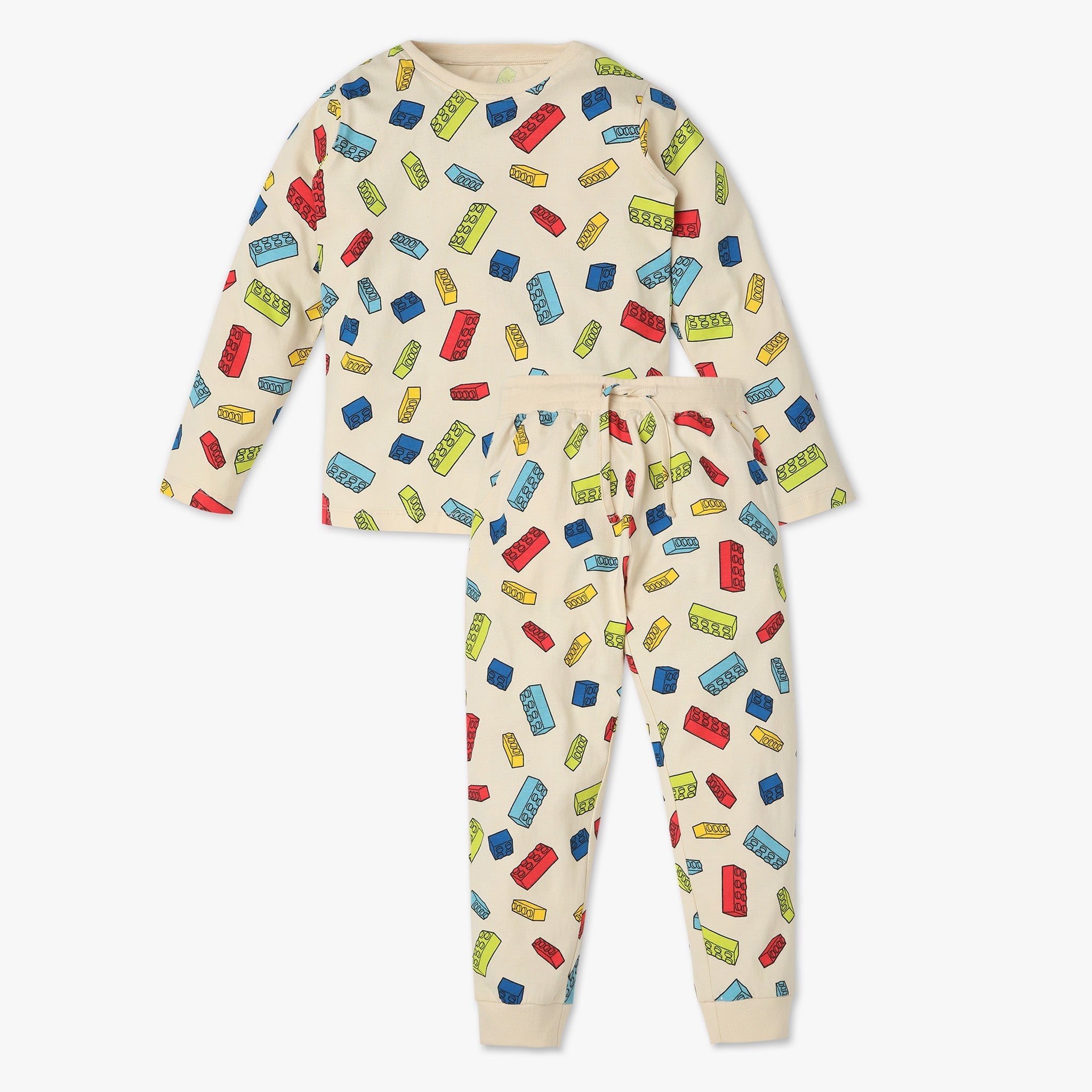 These printed pattern t-shirt with trackpant sleepwear set has crew neck and full sleeve. Made from cotton, your kid's feel comfortable wearing the product.