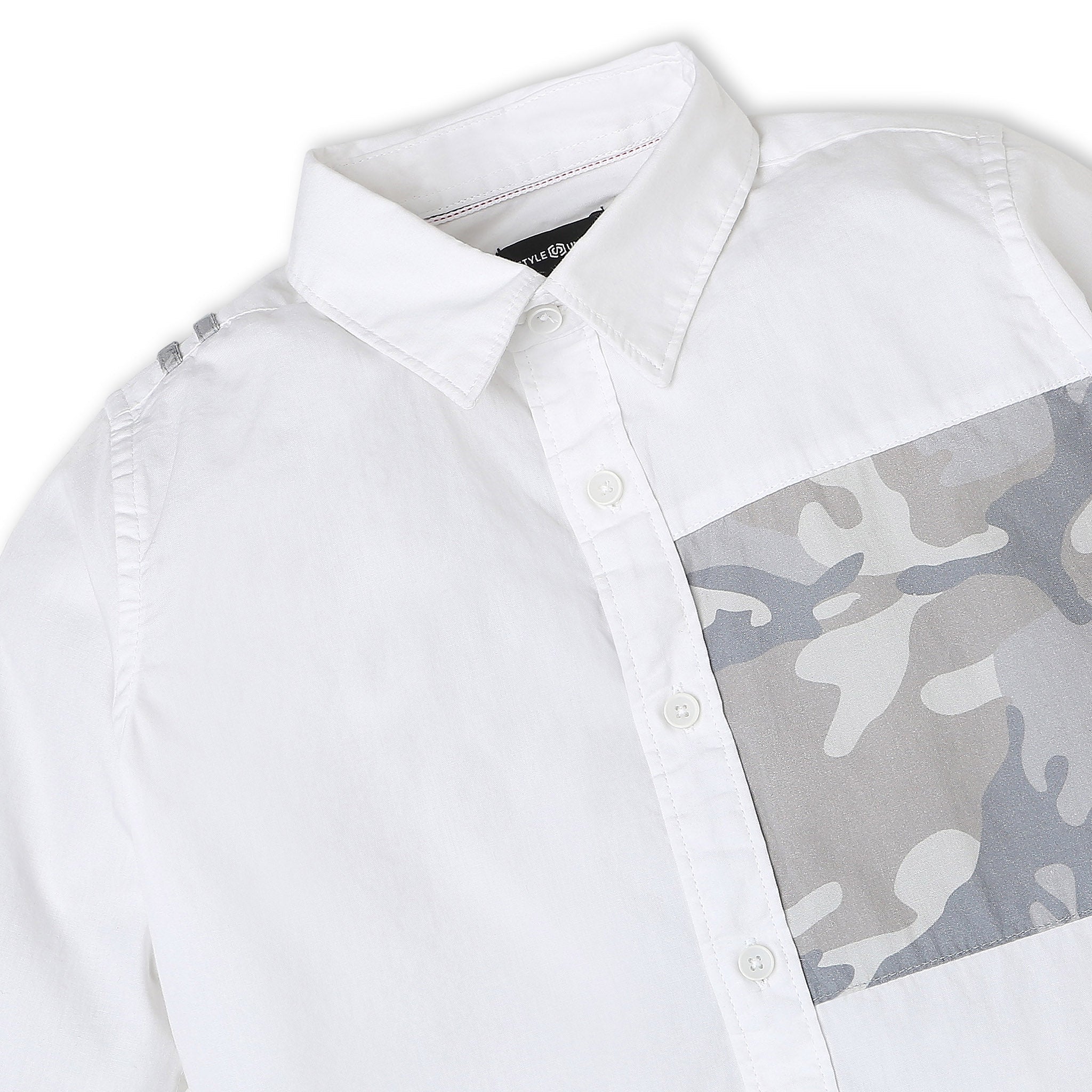 These solid pattern shirt has shirt collar and full sleeve. Made from cotton, your kid's feel comfortable wearing the product.