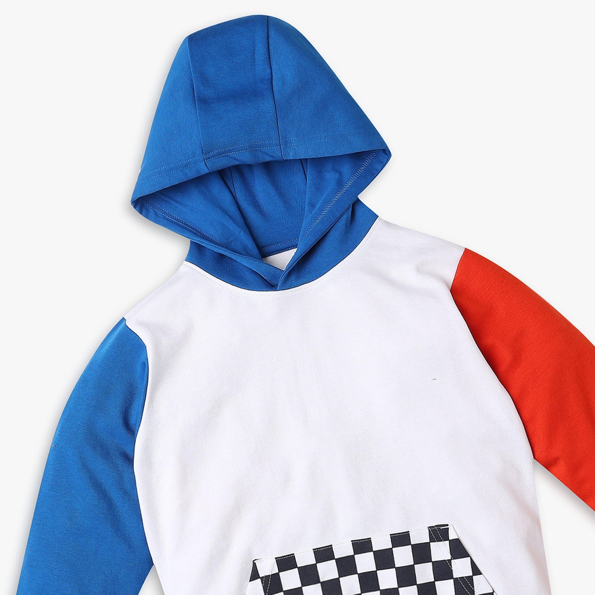 These solid pattern sweatshirt has hoodie and full sleeve. Made from cotton polyester, your kid's feel comfortable wearing the product.