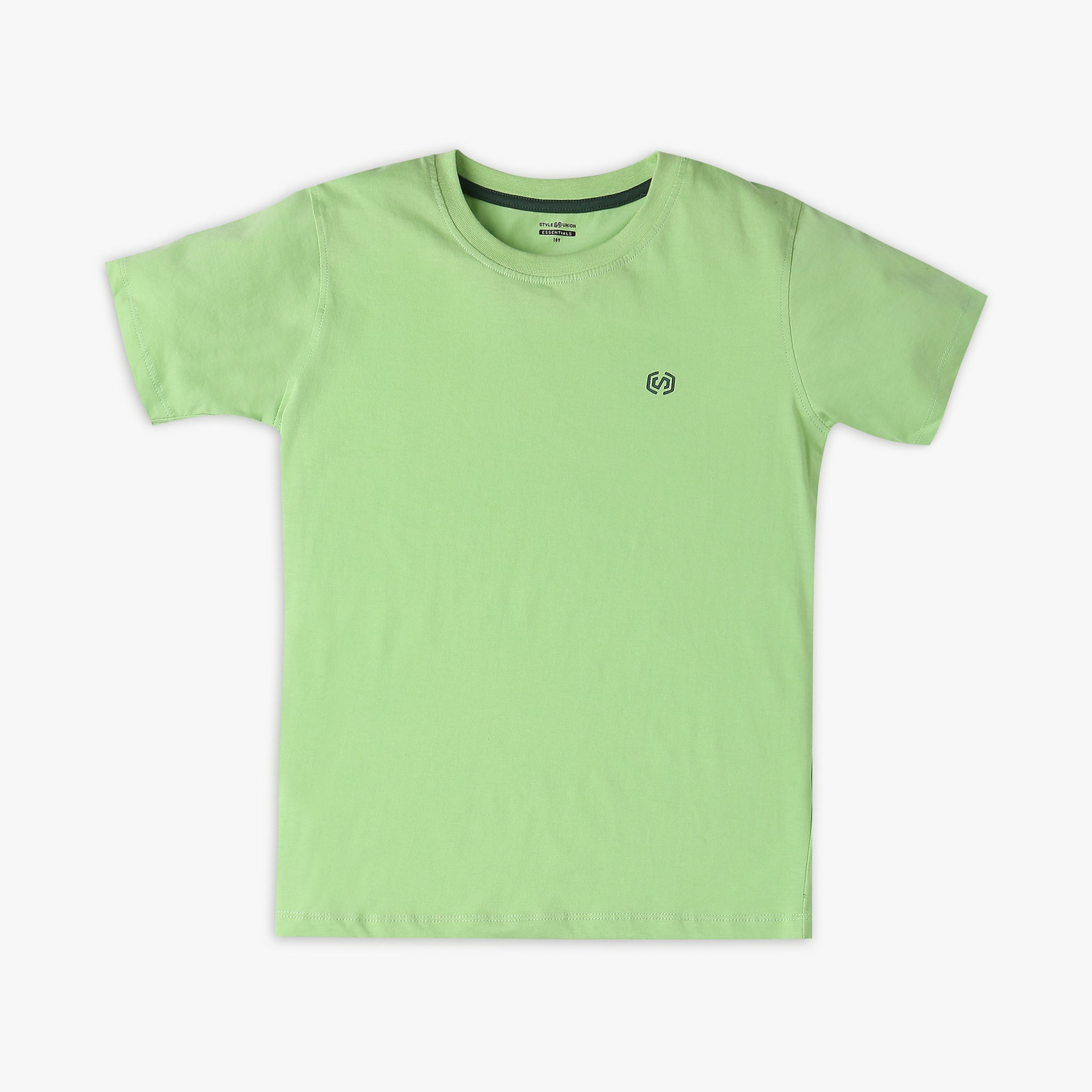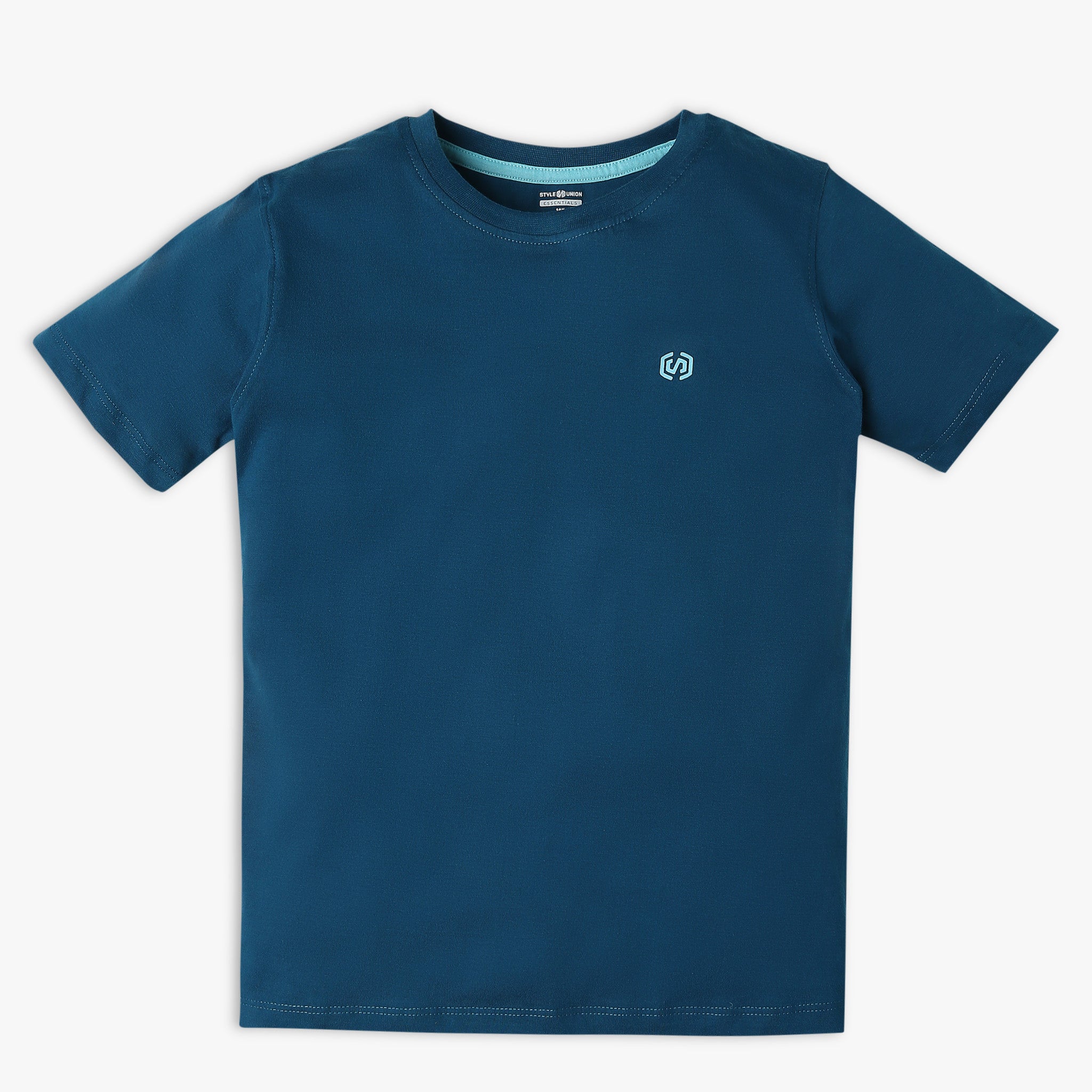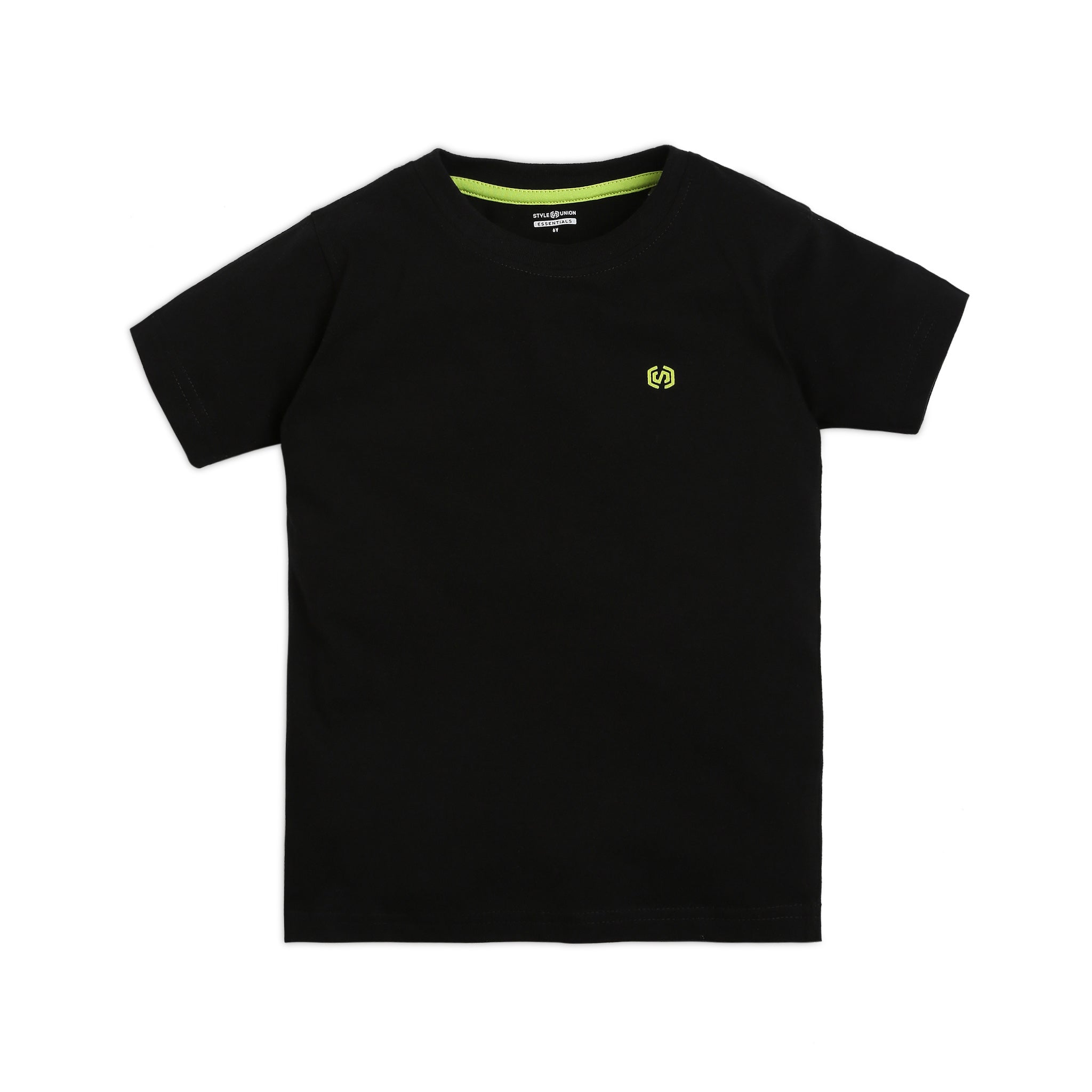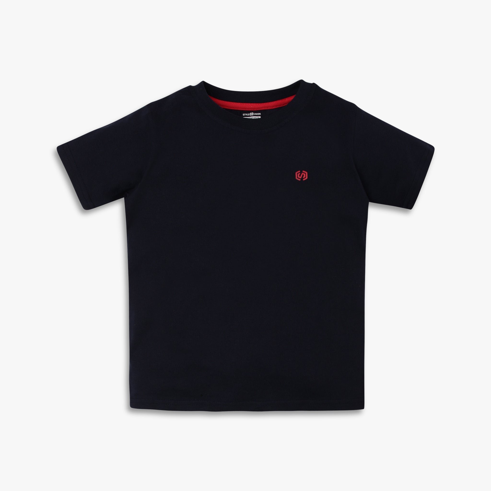 This knitted boys t shirt theme solid pattern t-shirt has a crew neck and half sleeve. Made from cotton, your kid's feel comfortable wearing a product.