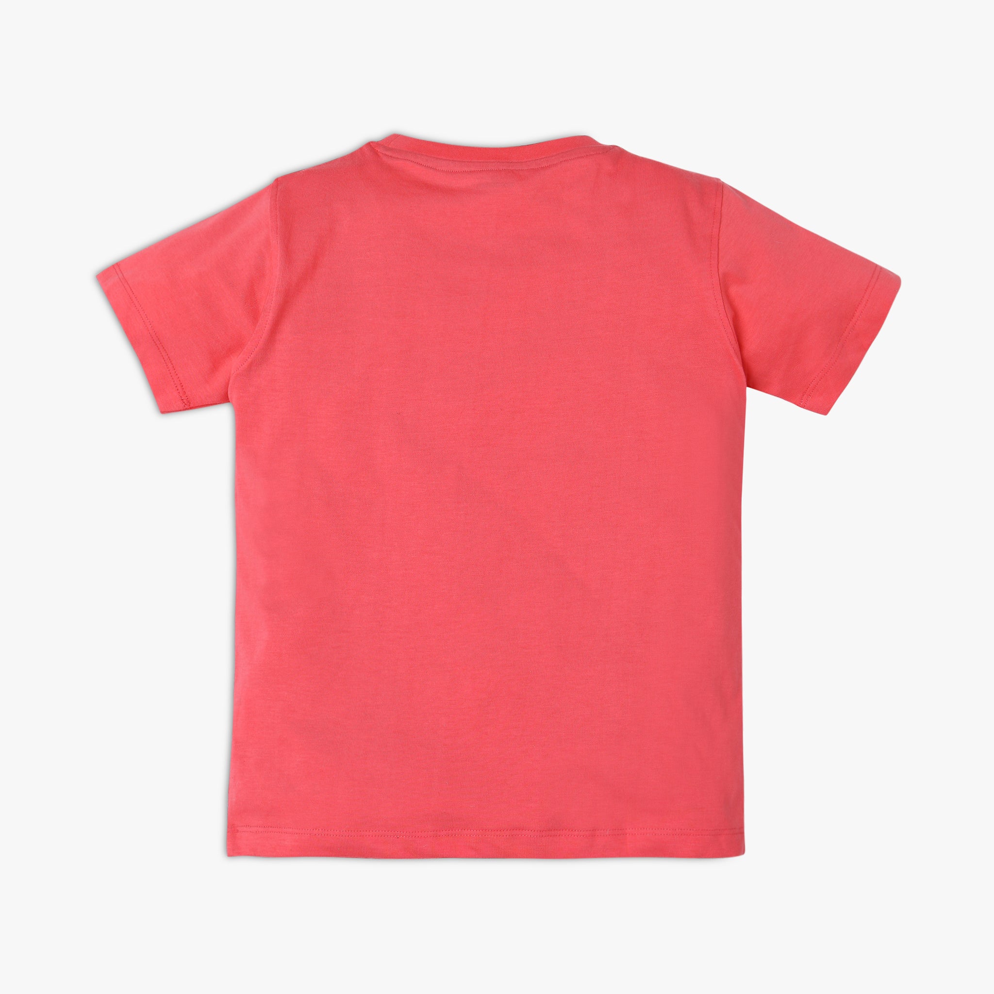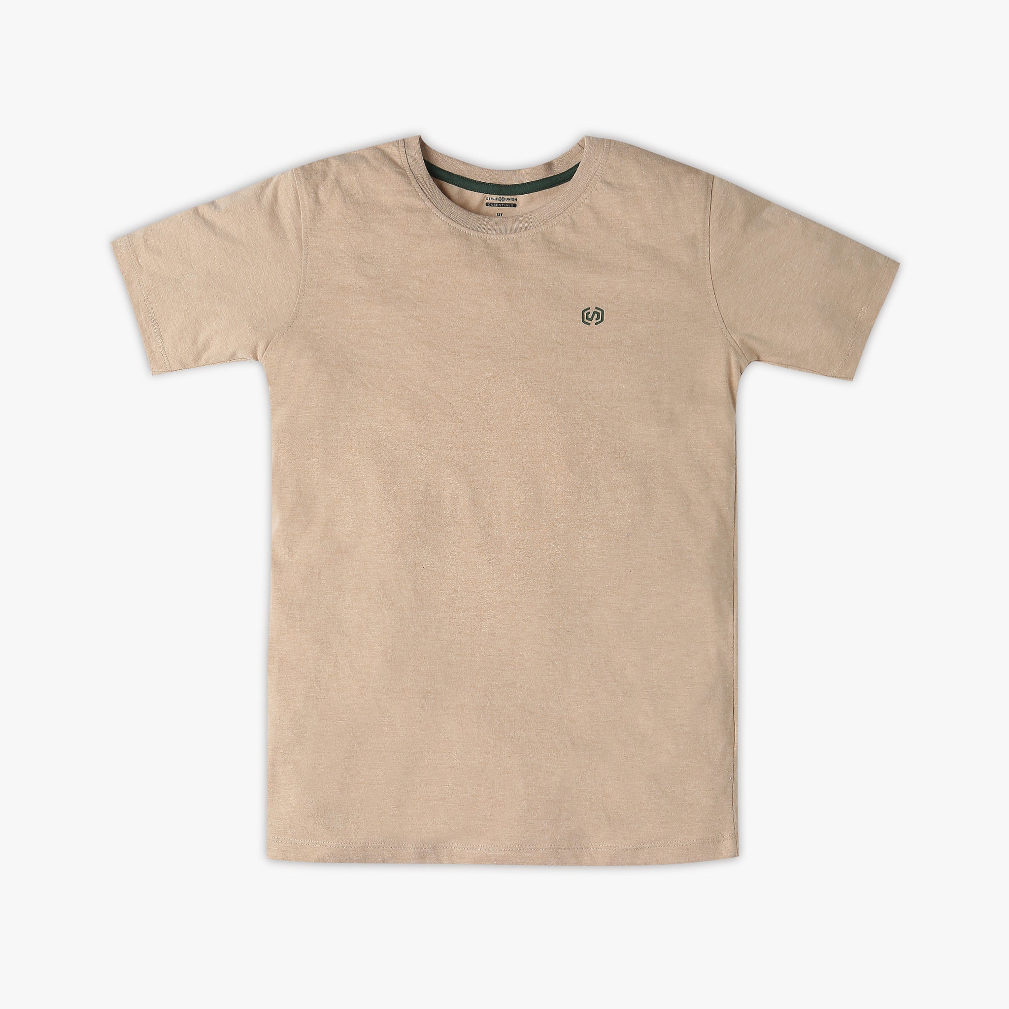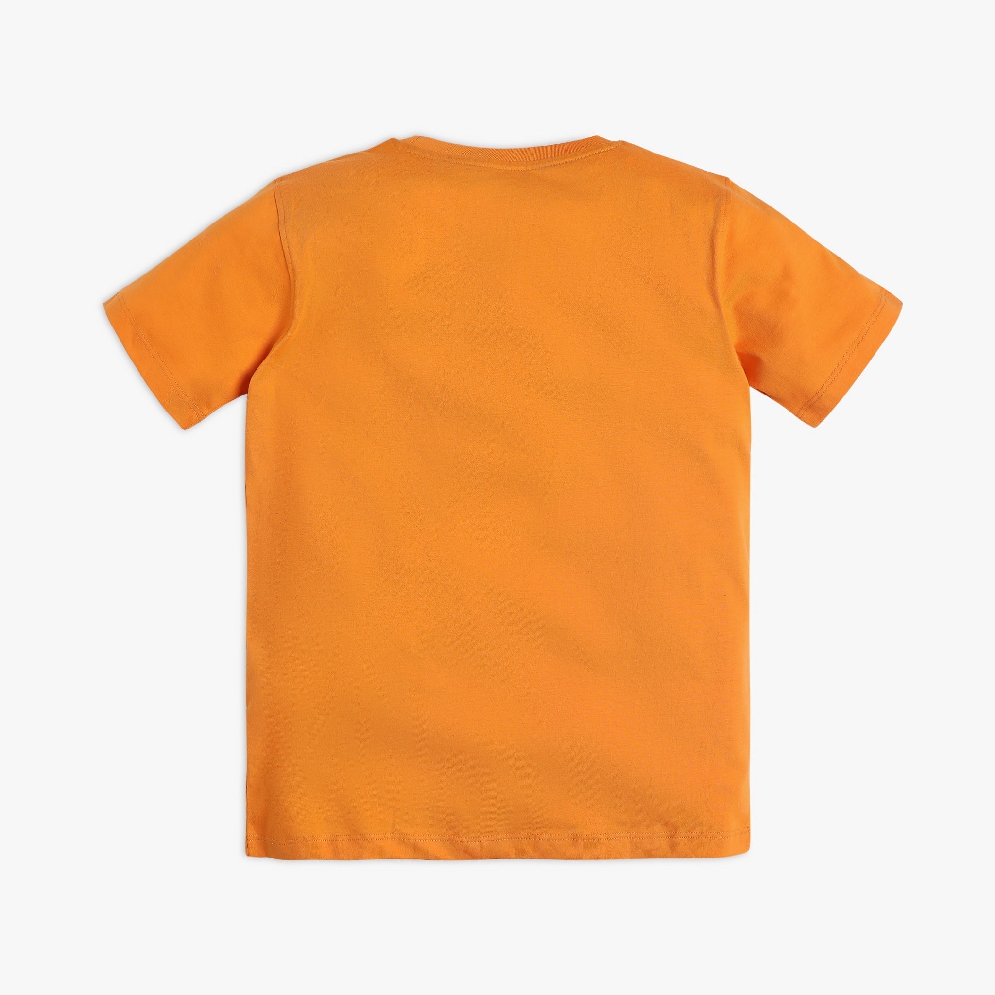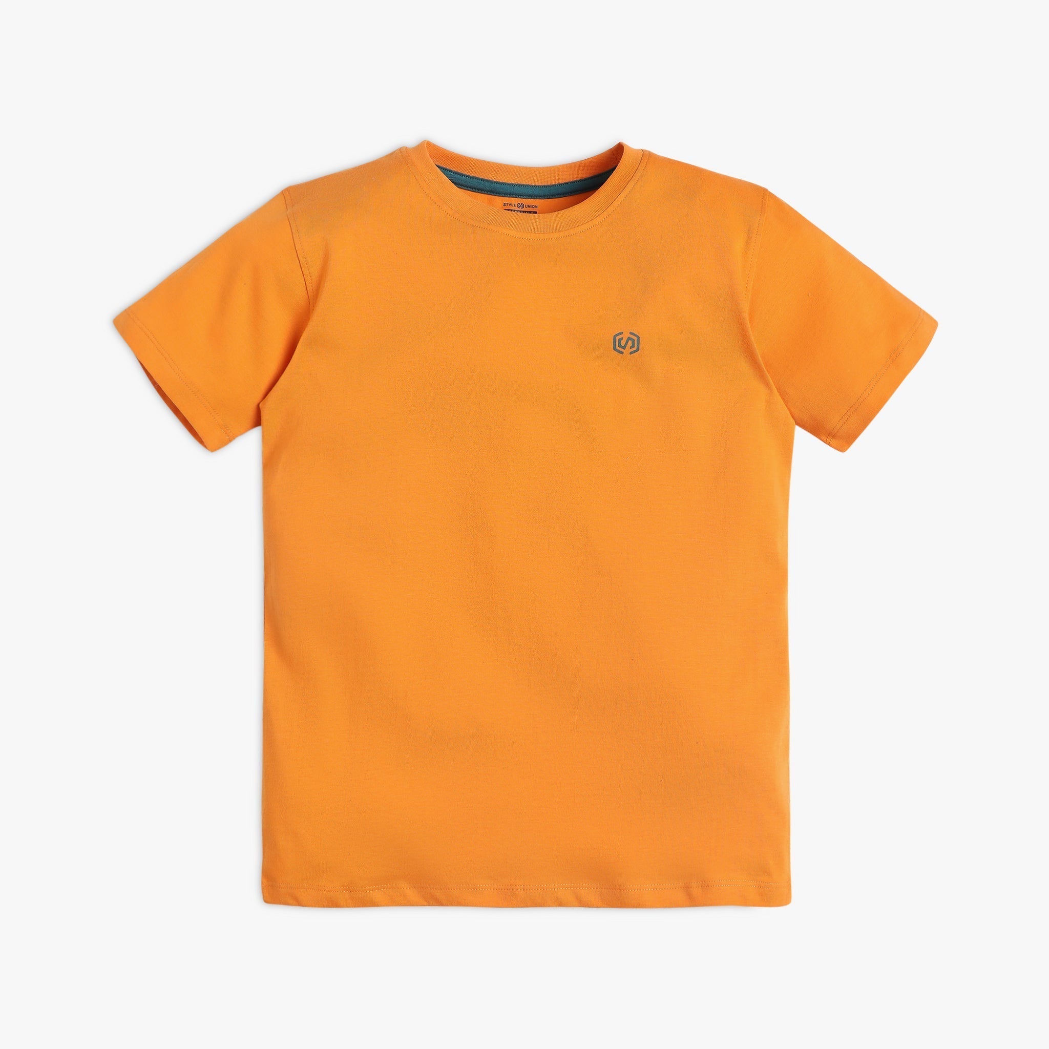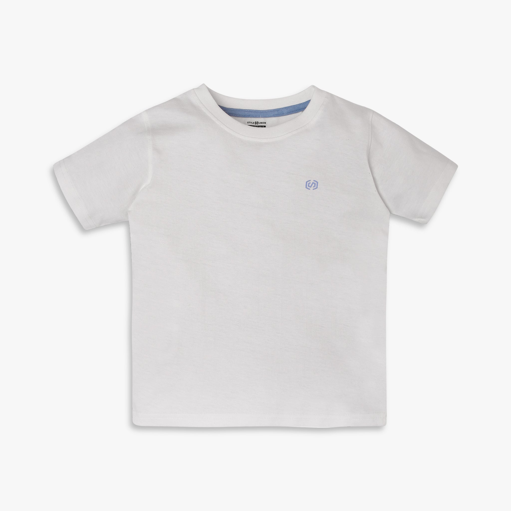 This knitted boys t shirt theme solid pattern t-shirt has a crew neck and half sleeve. Made from cotton, your kid's feel comfortable wearing a product.