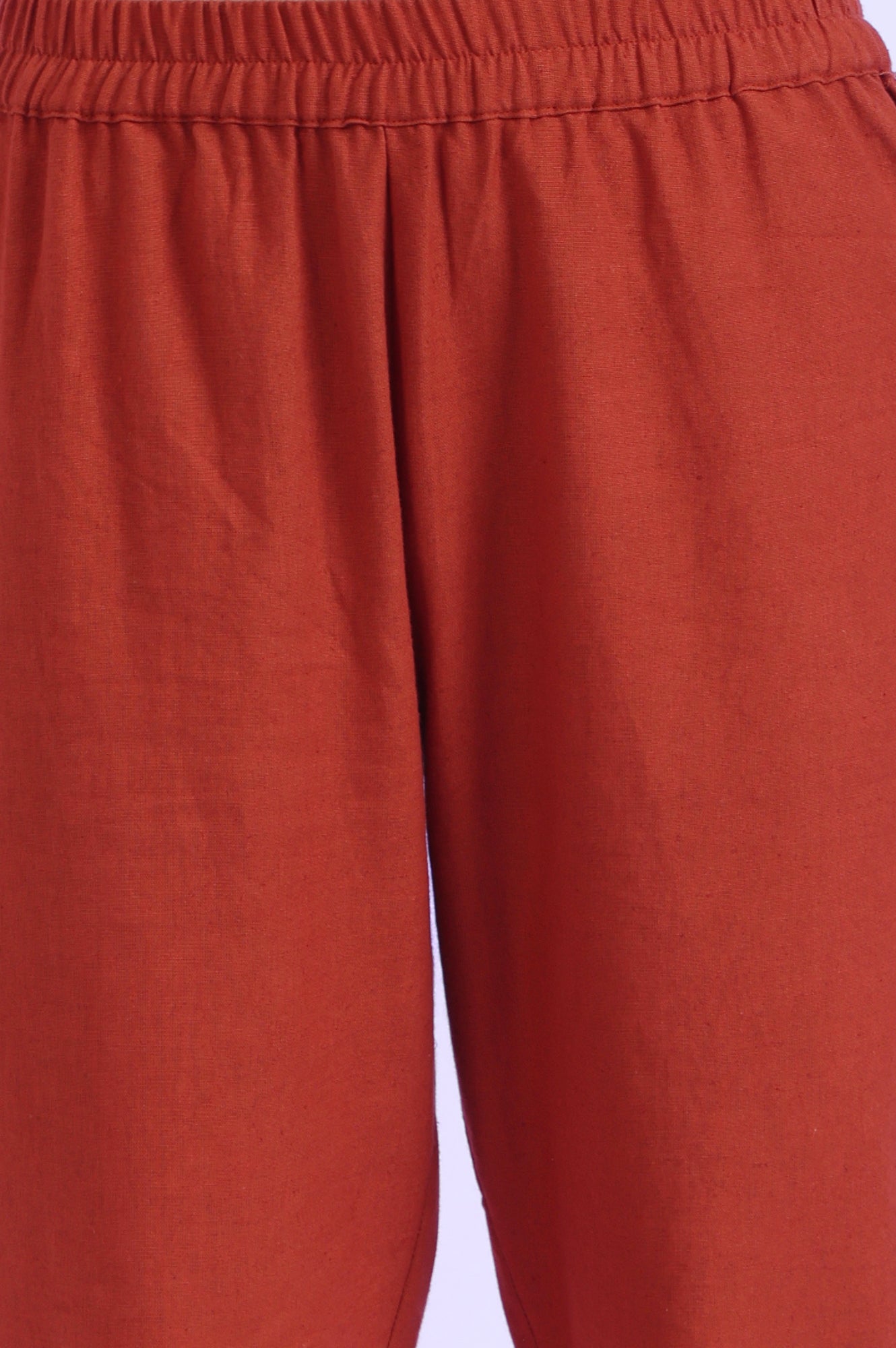 Discover the perfect blend of tradition and modernity with this stunning rust-colored ethnic set from Aurelia. Crafted from 100% polyester, this fusion ensemble features a flared silhouette and an anarkali-style kurta paired with trousers and a dupatta. The three-quarter sleeves and round neckline add a touch of elegance, while the foil and dori embroidery elevate its special occasion appeal. The woven construction ensures durability, making it ideal for hand-wash care. This versatile set is perfect for those who appreciate the fusion of contemporary style with ethnic charm.