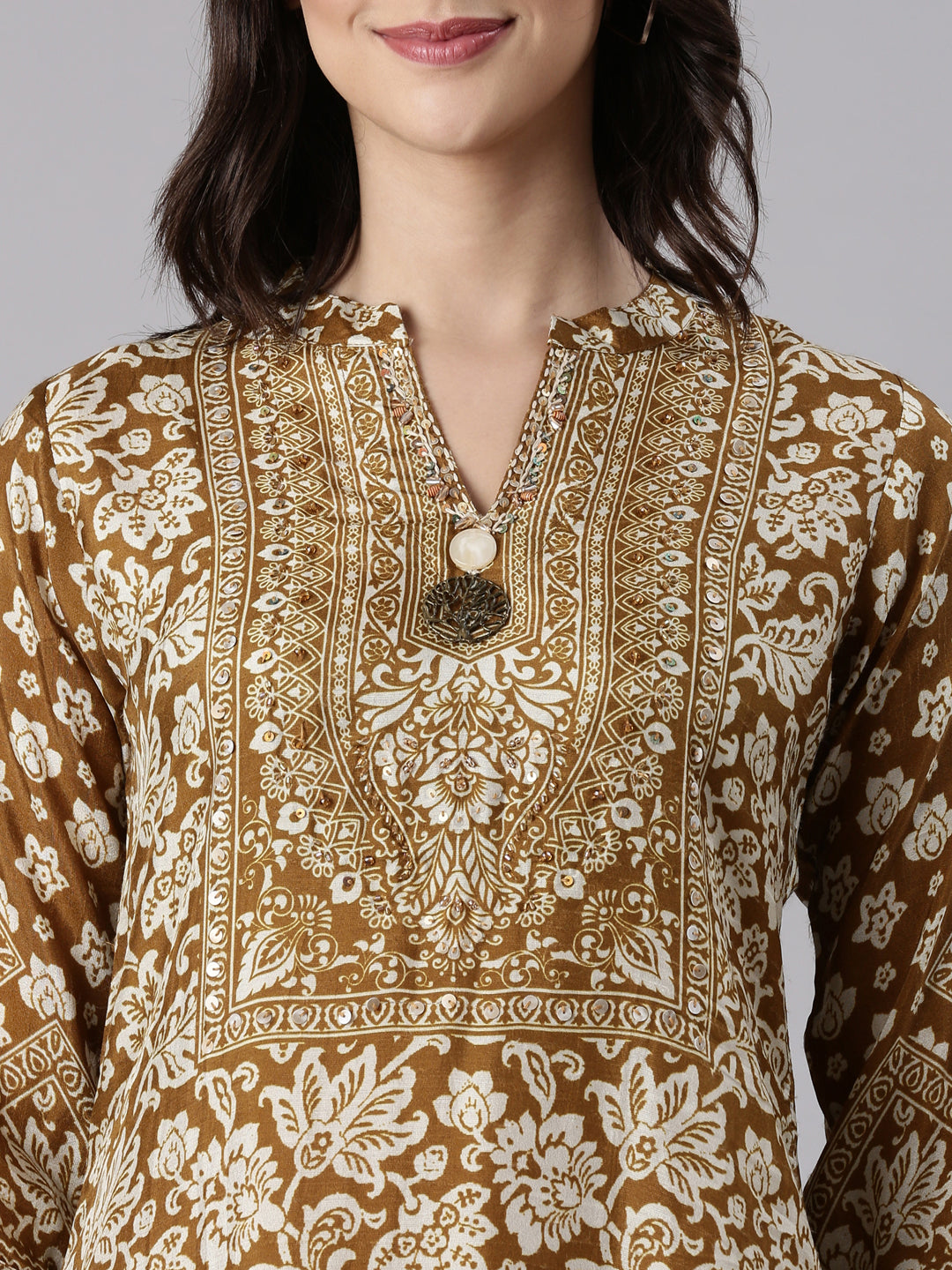 Experience timeless elegance with this Brown Muslin Printed Three Piece Set. Crafted from soft, breathable muslin fabric, it effortlessly combines comfort with style. The subtle printed design adds a refined touch, making it perfect for both casual and semi-formal occasions. This versatile set ensures you stay comfortably chic throughout the day.