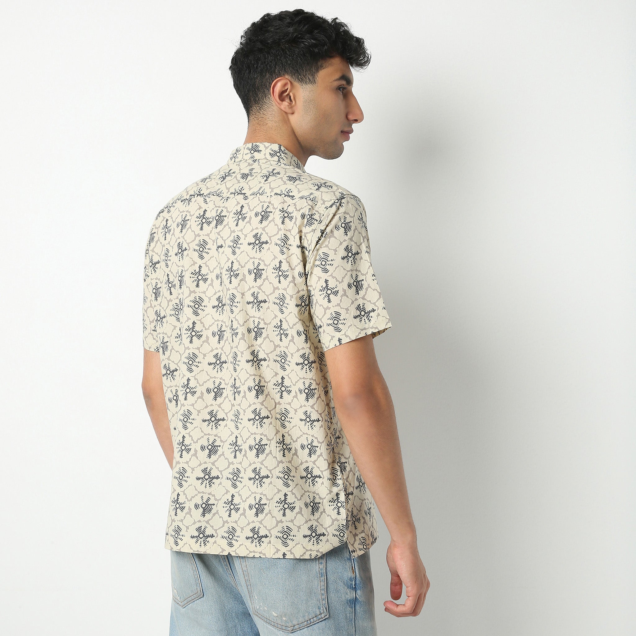Camp Collar Half Sleeve Relaxed Fit Block Print Shirt