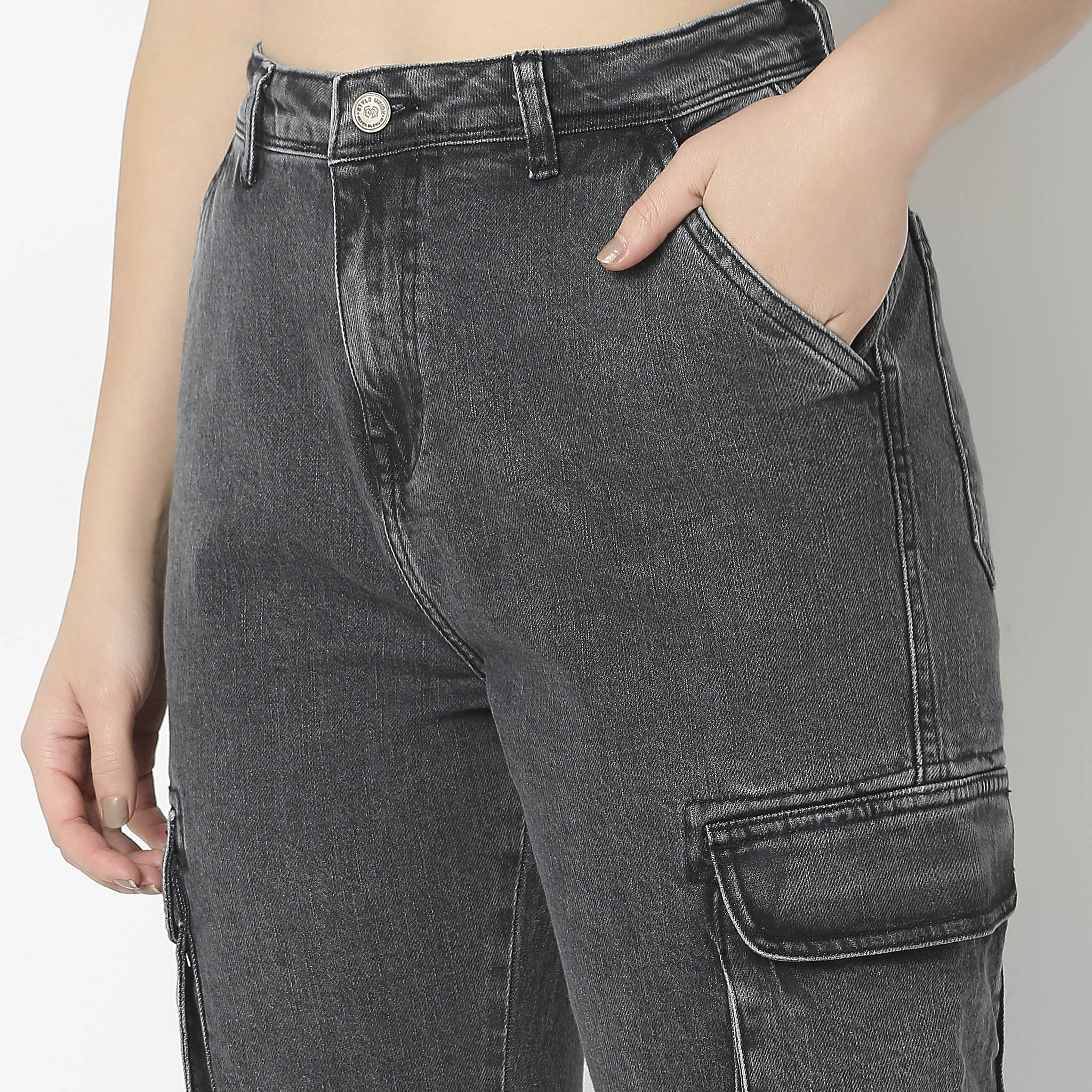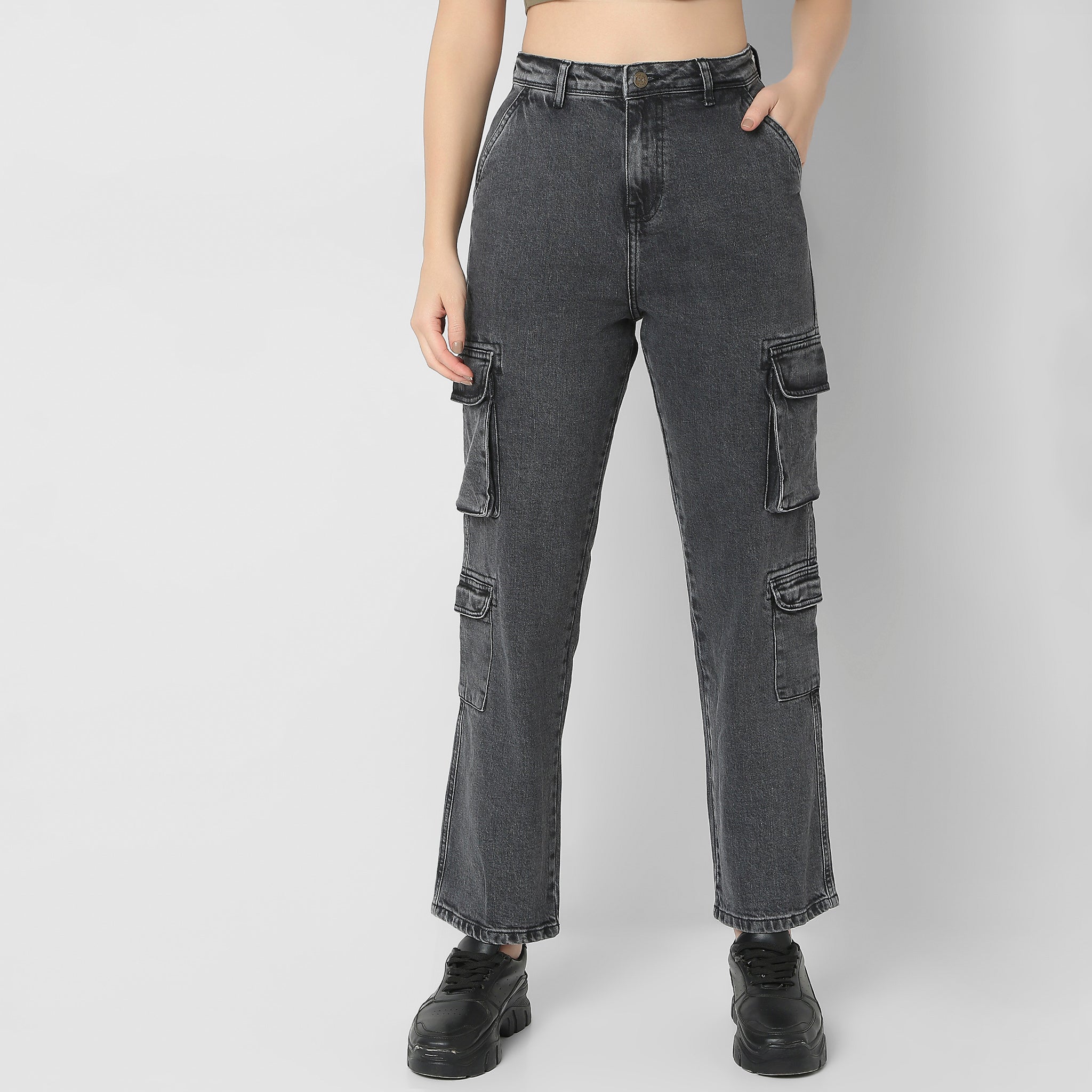 These solid pattern cargo fit jeans has full length, high rise waist. Made from cotton, it is soft and comfortable to wear.