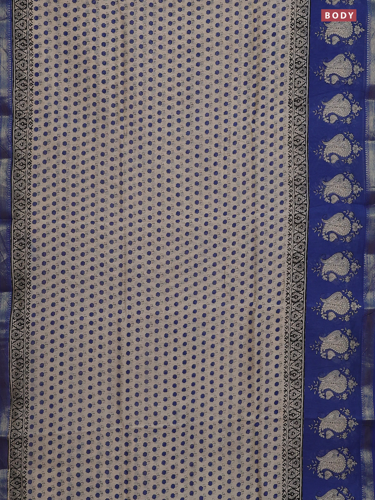 Chanderi bagru saree beige and blue with allover floral butta prints and maheswari border