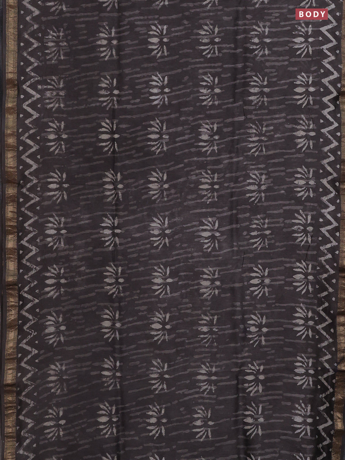 Chanderi bagru saree grey with allover dabu prints and mageshwari border