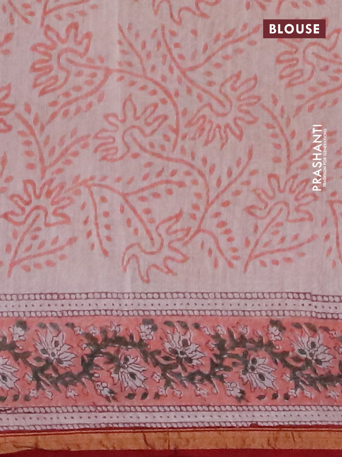 Chanderi bagru saree maroon and peach orange with allover prints and zari woven border