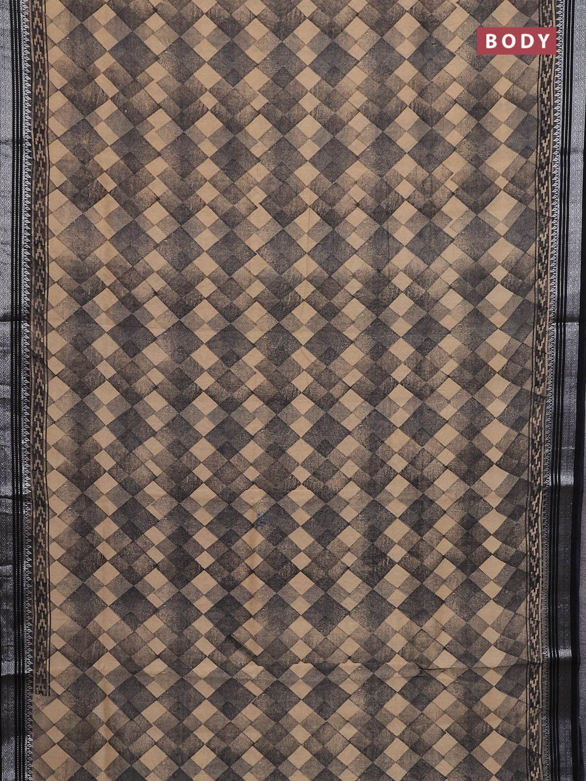 Chanderi silk cotton saree black with allover geometric prints and silver zari woven border