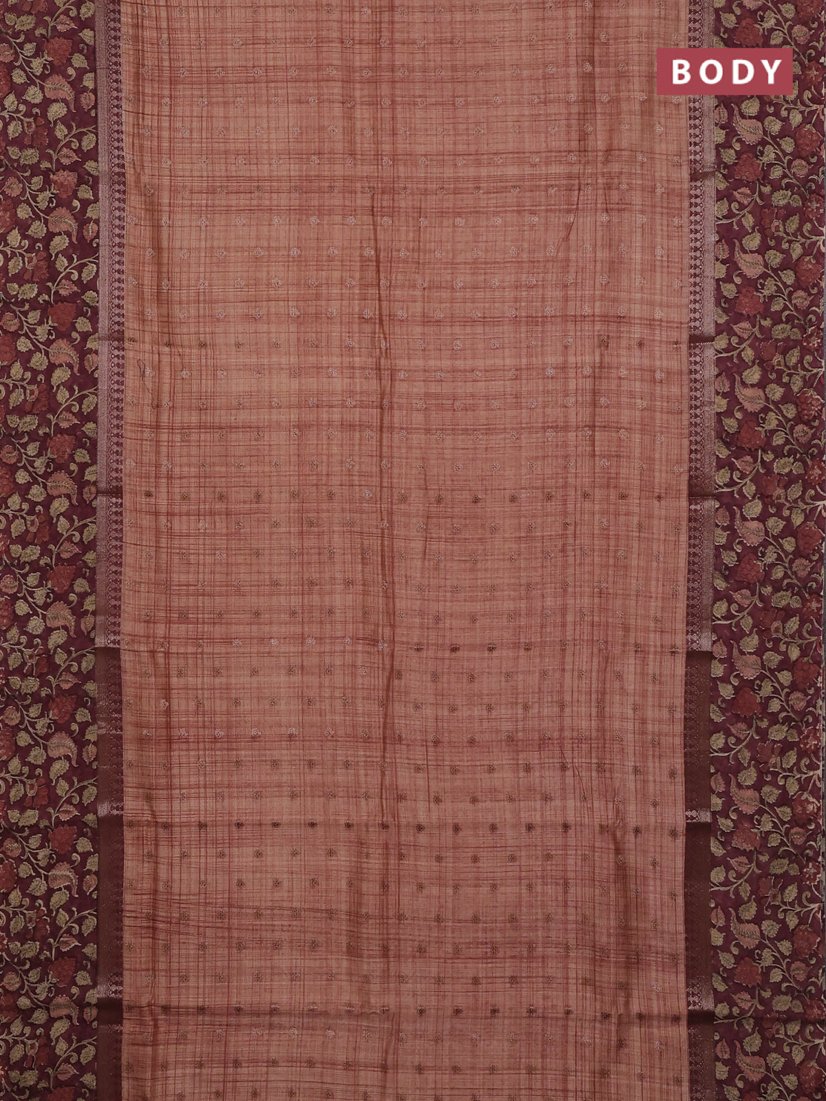 Chanderi silk cotton saree rust shade and pastel maroon with allover zari buttas and printed border