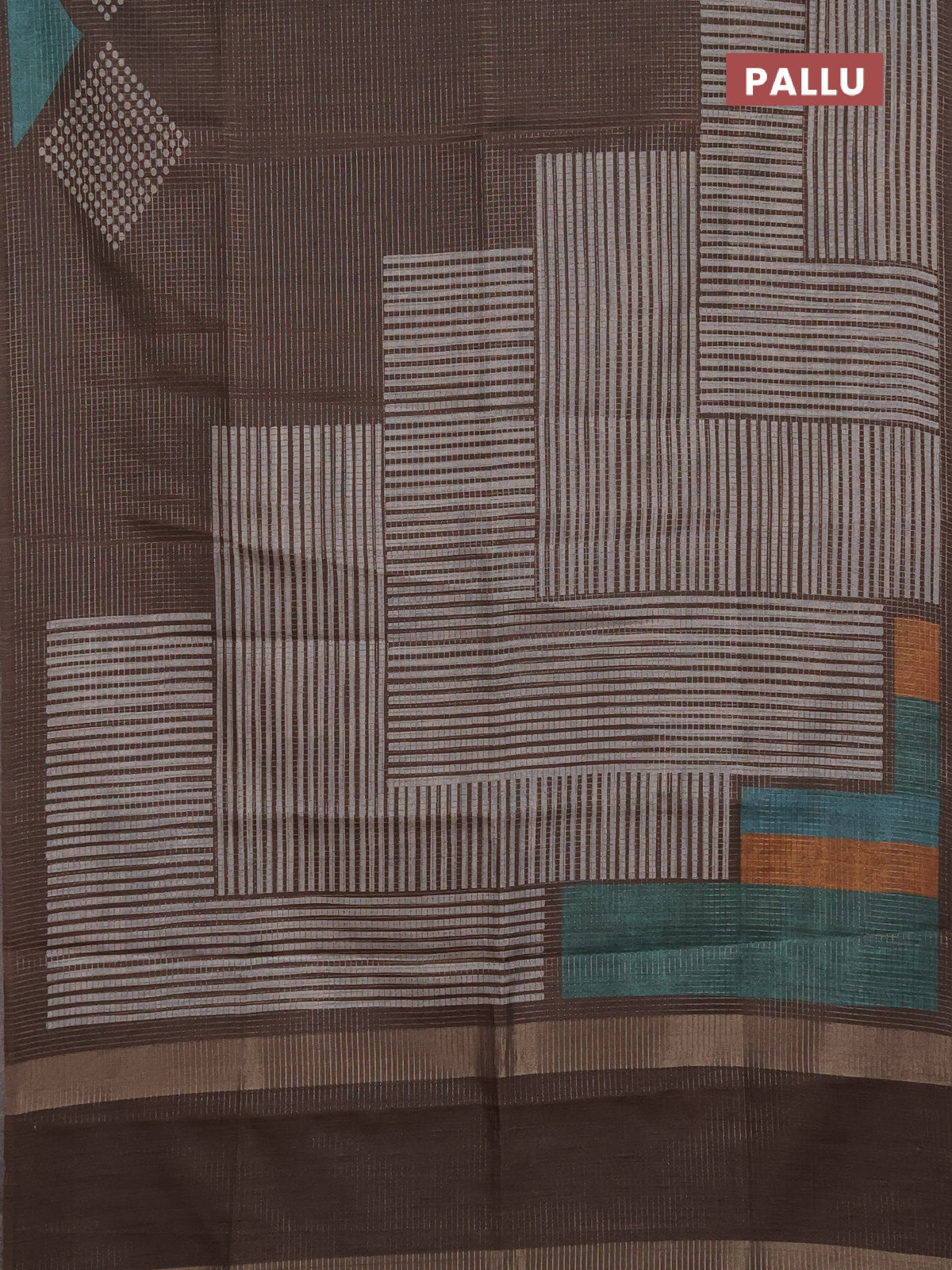 Chappa saree coffee brown and grey with allover small zari checked pattern and printed border