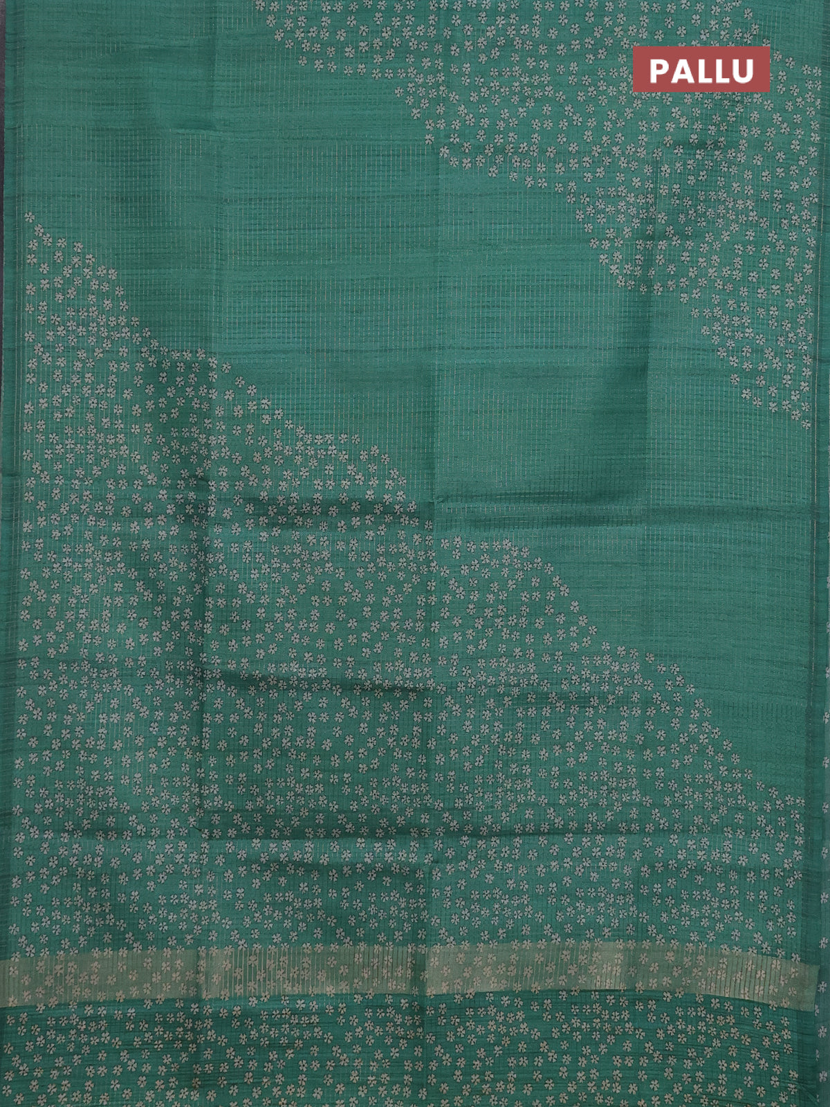 Chappa saree green with allover small zari checked pattern and floral digital printed pallu