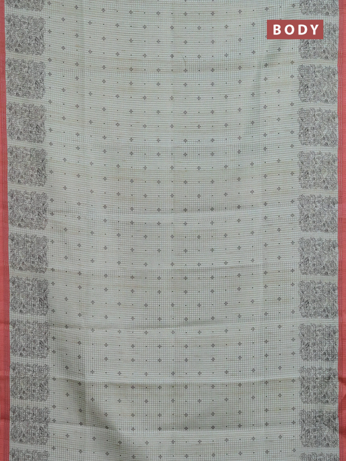 Chappa saree pastel green and red shade with allover small zari checked pattern & butta prints and printed border