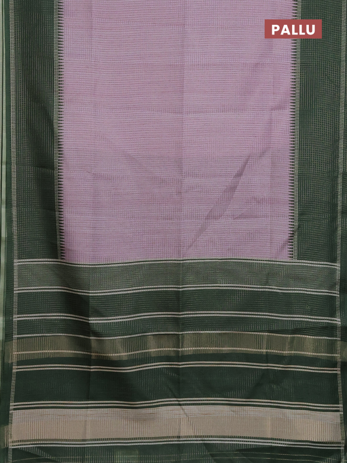 Chappa saree pastel lavender and dark green with allover small zari checked pattern and temple design zari woven border