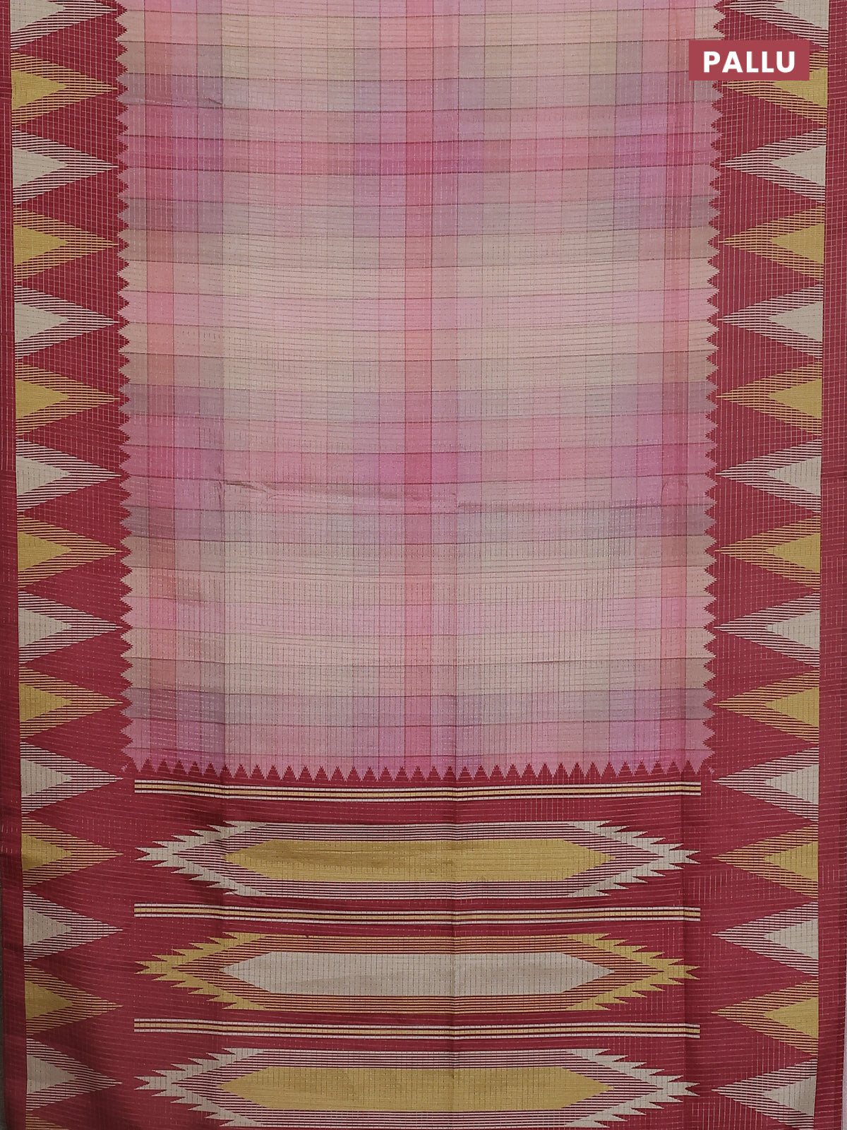 Chappa saree pastel peach and maroon with allover zari checked pattern and temple design border