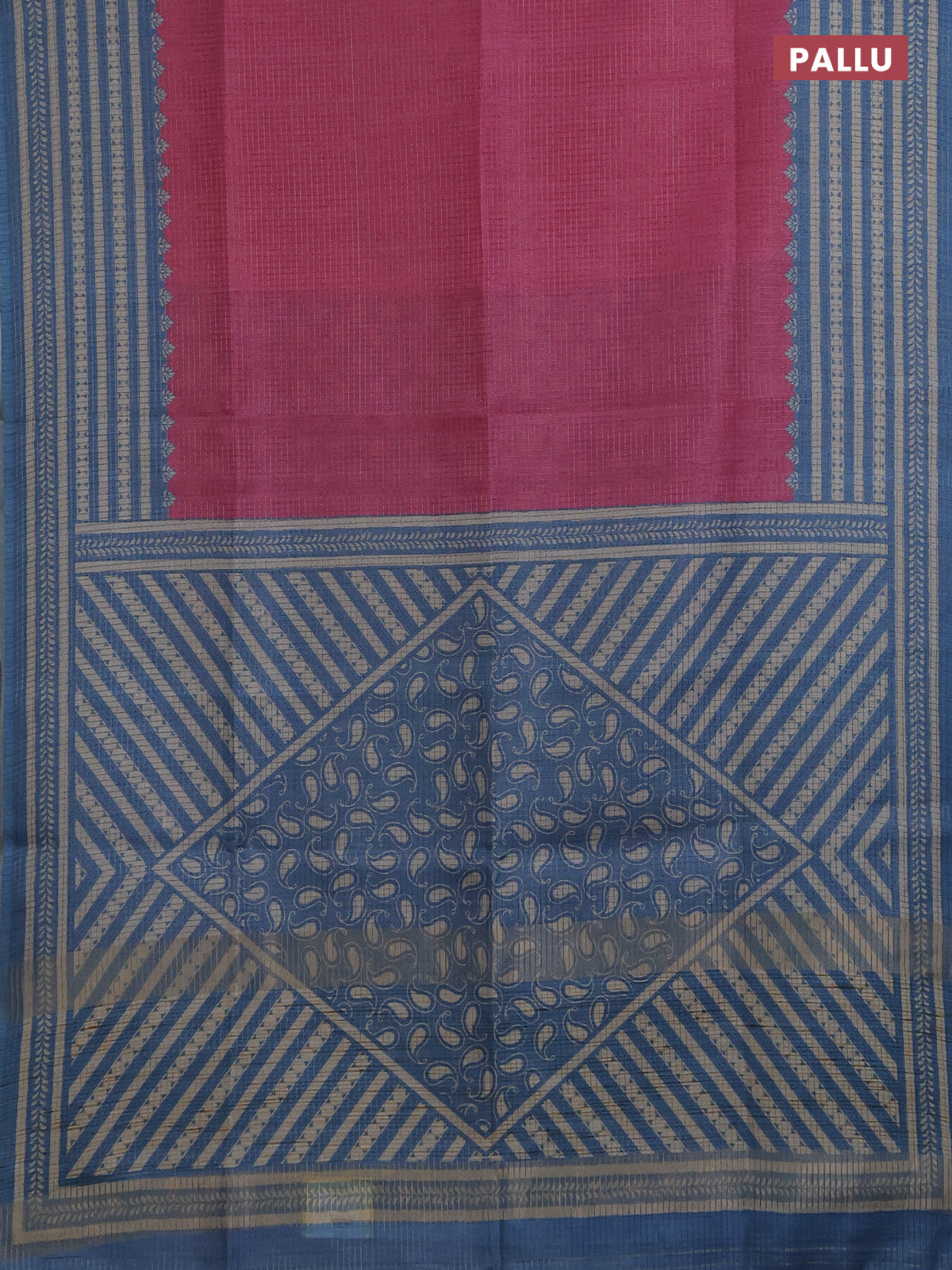 Chappa saree pink and cs blue with allover small zari checked pattern and printed border