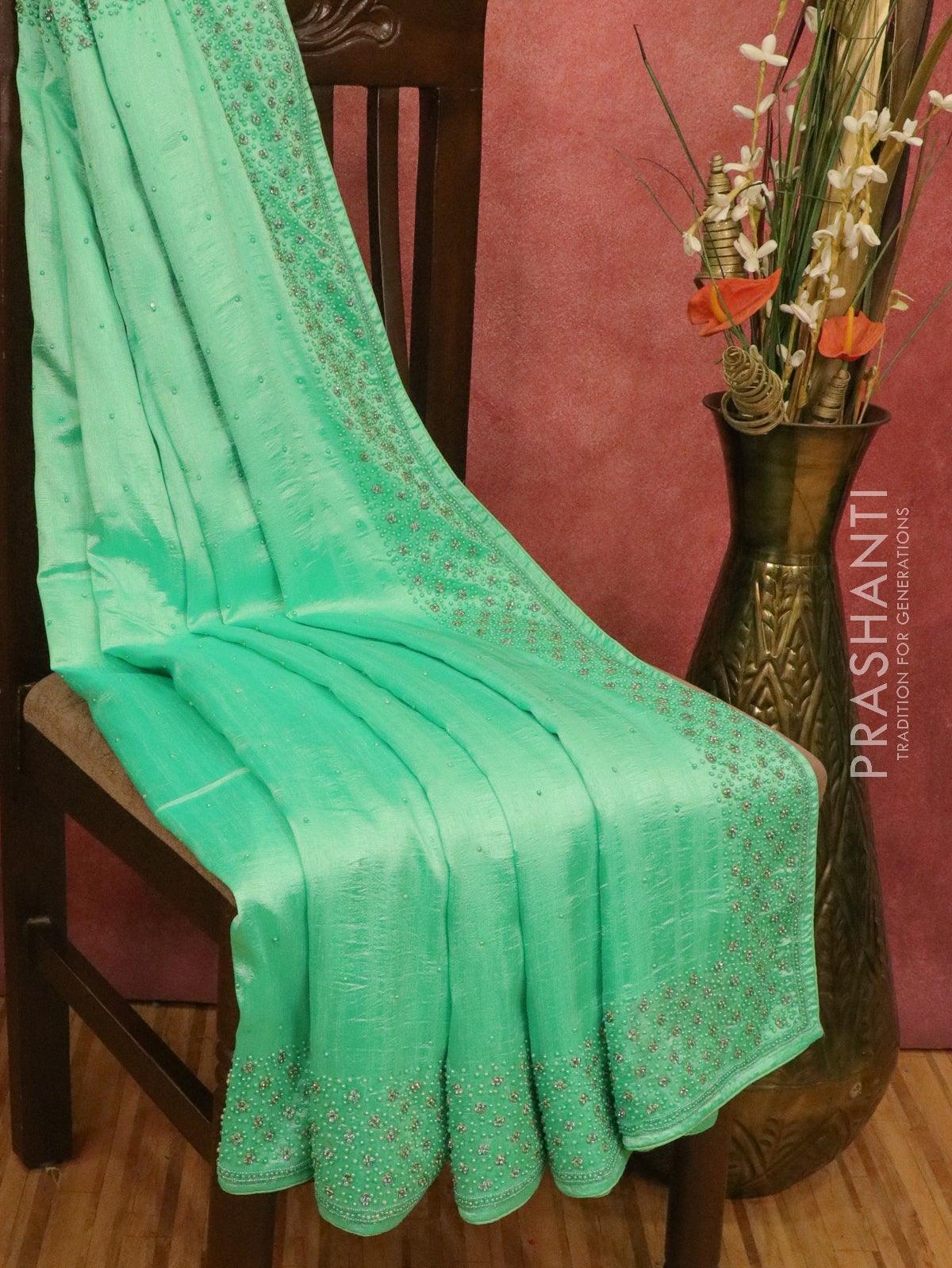 Chappa saree pista green with embroidery beads & stone work