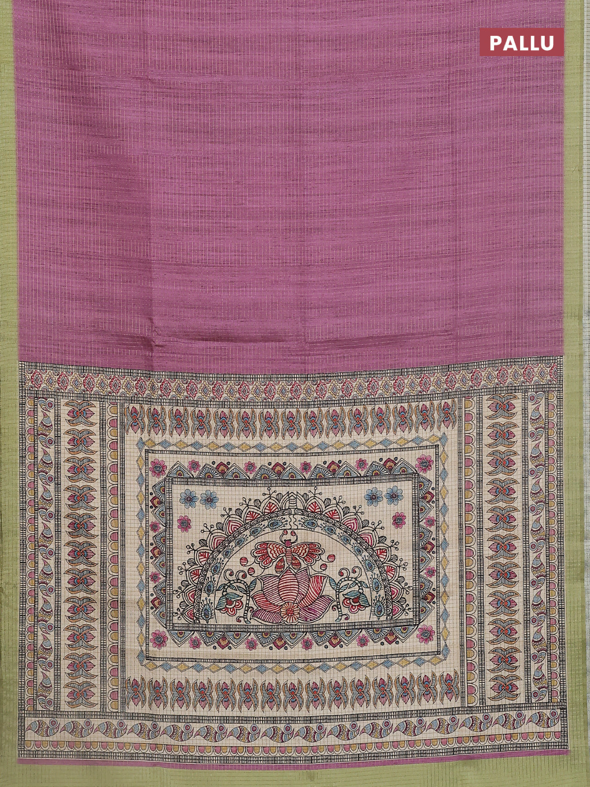 Chappa saree purple and pista green with allover zari checked pattern and madhubani printed pallu
