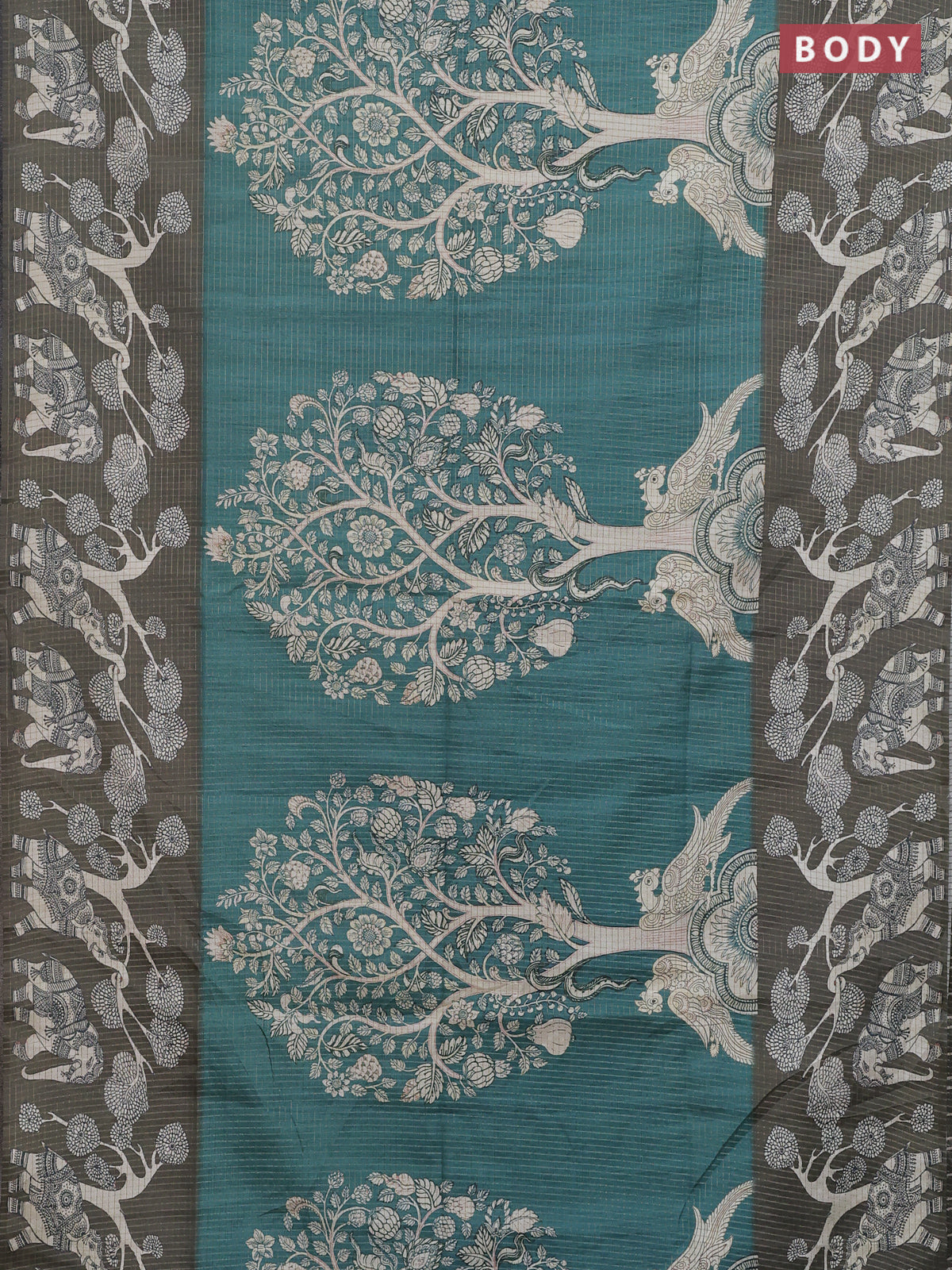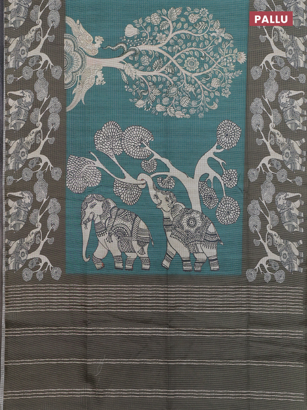 Chappa saree teal green and military green with allover zari checked pattern and printed pallu