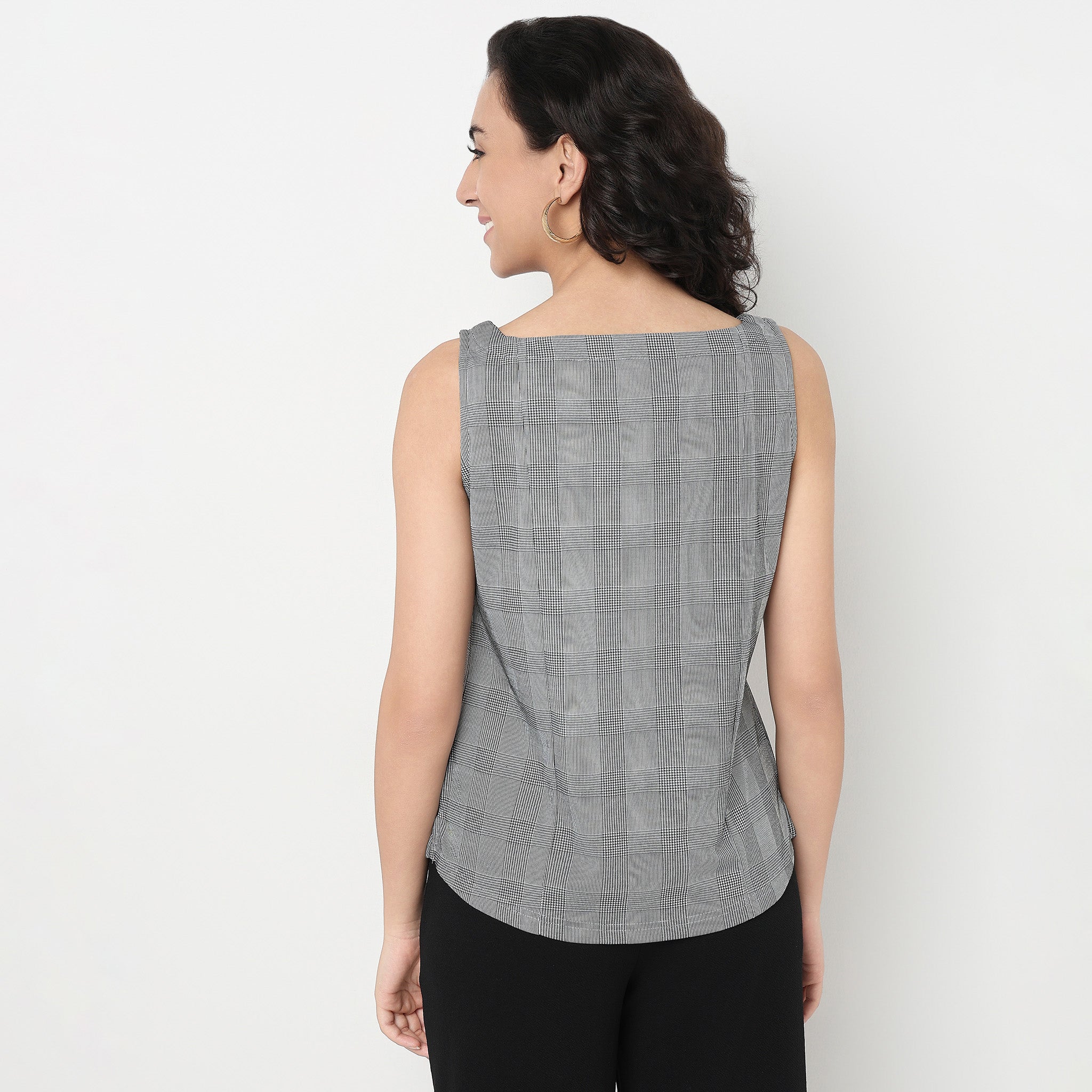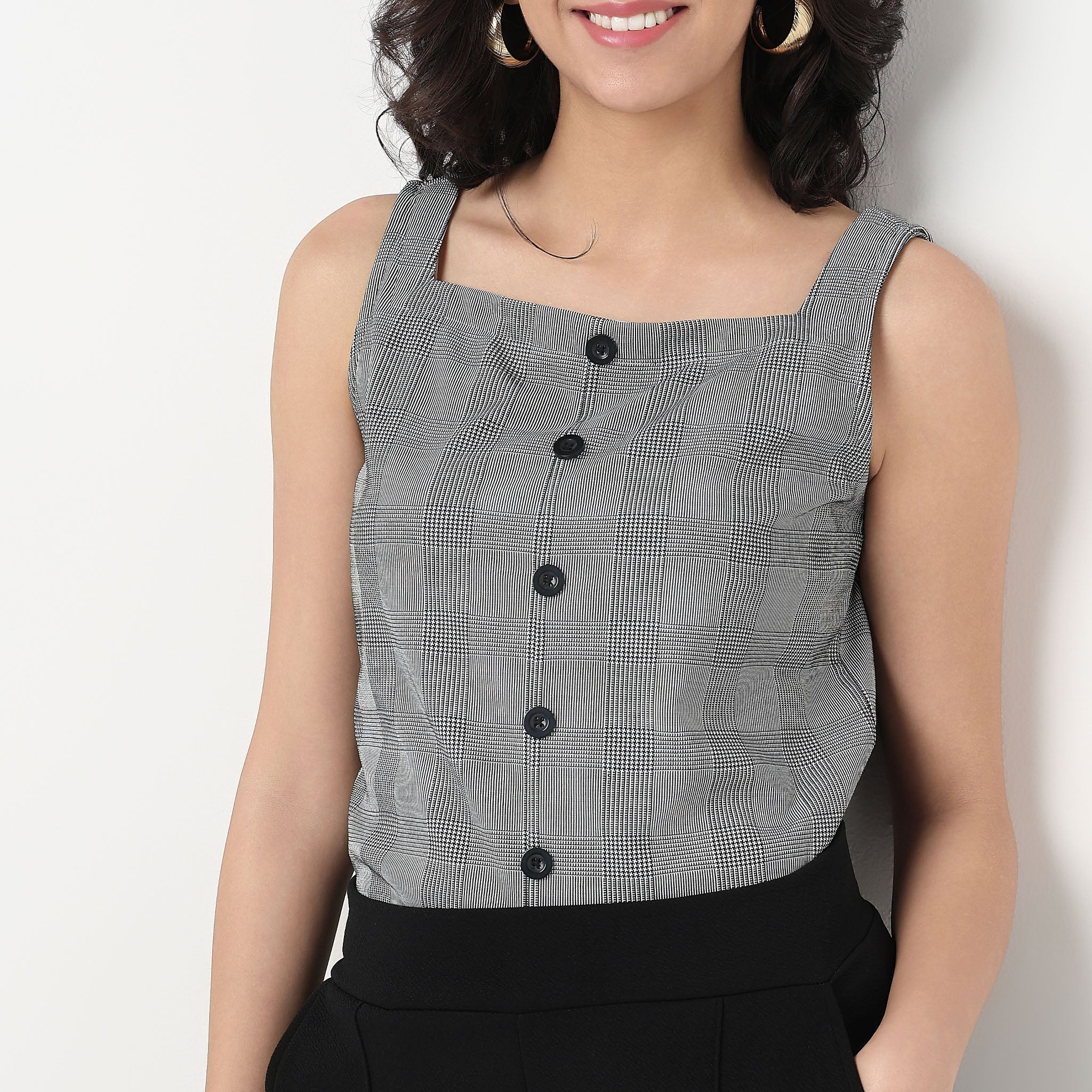 Experience the perfect blend of style and comfort with our Checkered Sleeveless Top. Crafted from a soft and stretchy polyester-spandex blend, this top offers a modern and stylish slim fit that flatters your silhouette. The checkered pattern adds a touch of classic charm, making it a versatile piece for any wardrobe. Whether you're heading to a casual brunch or a day at the office, this top ensures you look effortlessly chic and feel comfortable all day long.