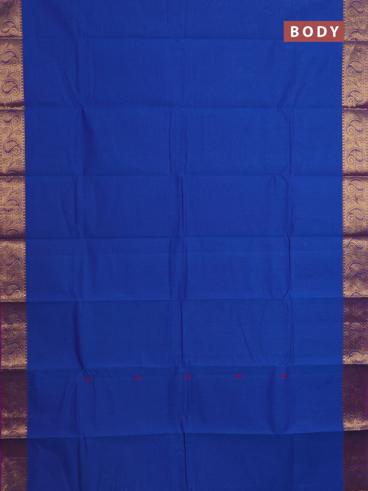 Chettinad cotton saree cs blue and purple with thread woven buttas and zari woven border