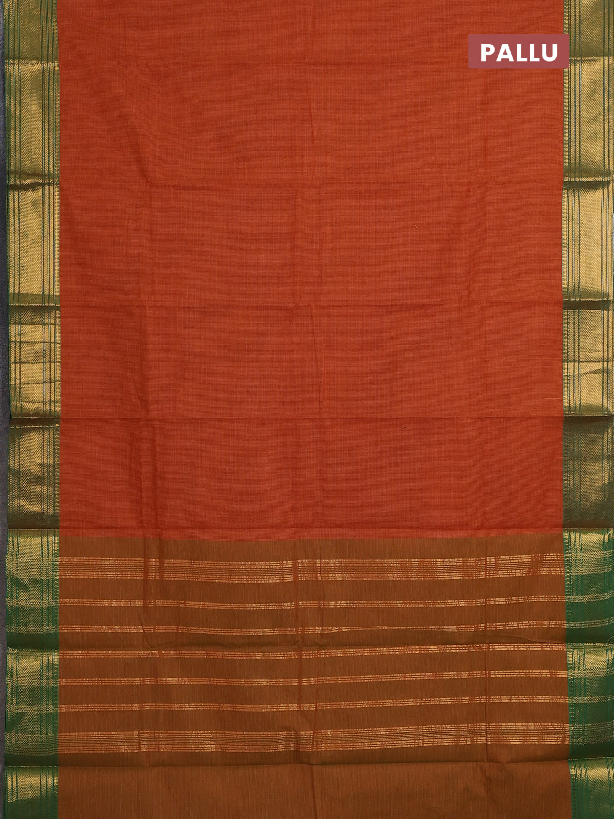 Chettinad cotton saree dark mustard and green with allover small checked pattern and zari woven border