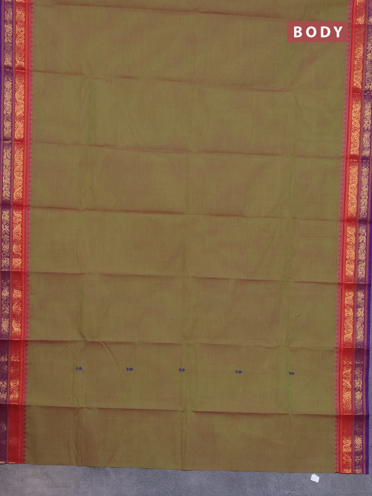 Chettinad cotton saree dual shade of green and blue with thread woven buttas and zari woven border