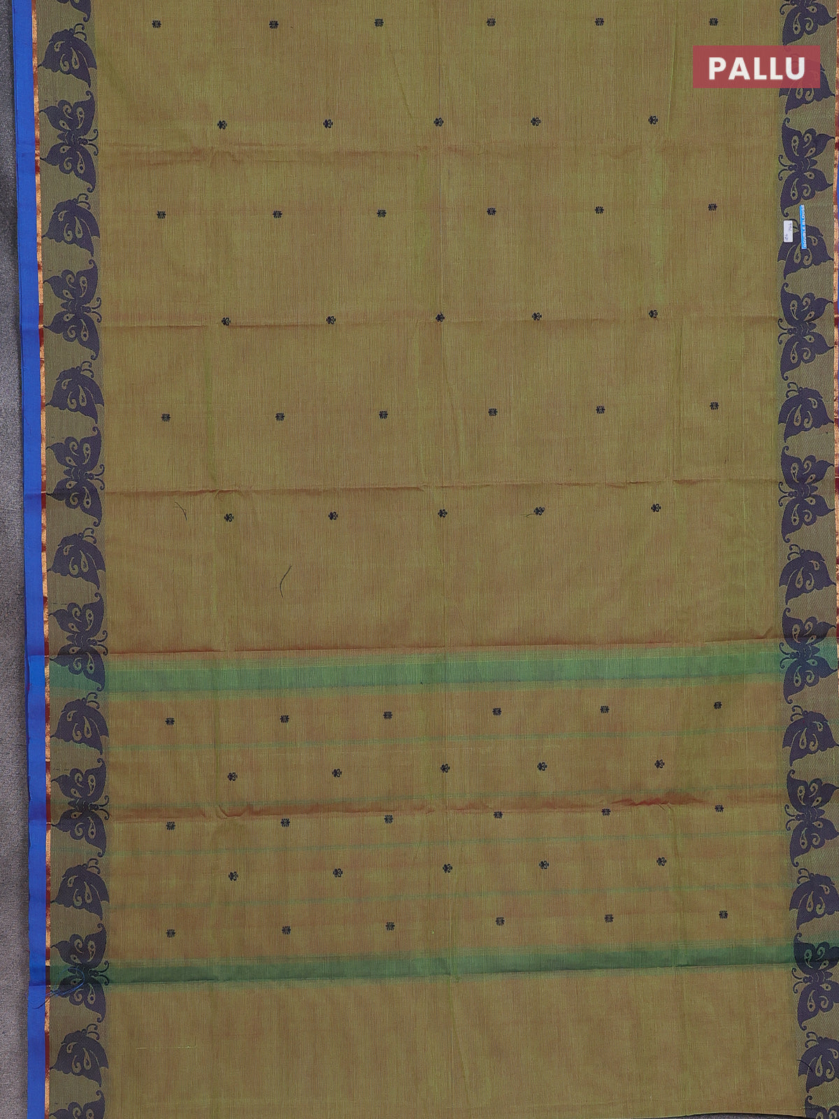 Chettinad cotton saree dual shade of green and cs blue with thread woven buttas and thread & zari woven border