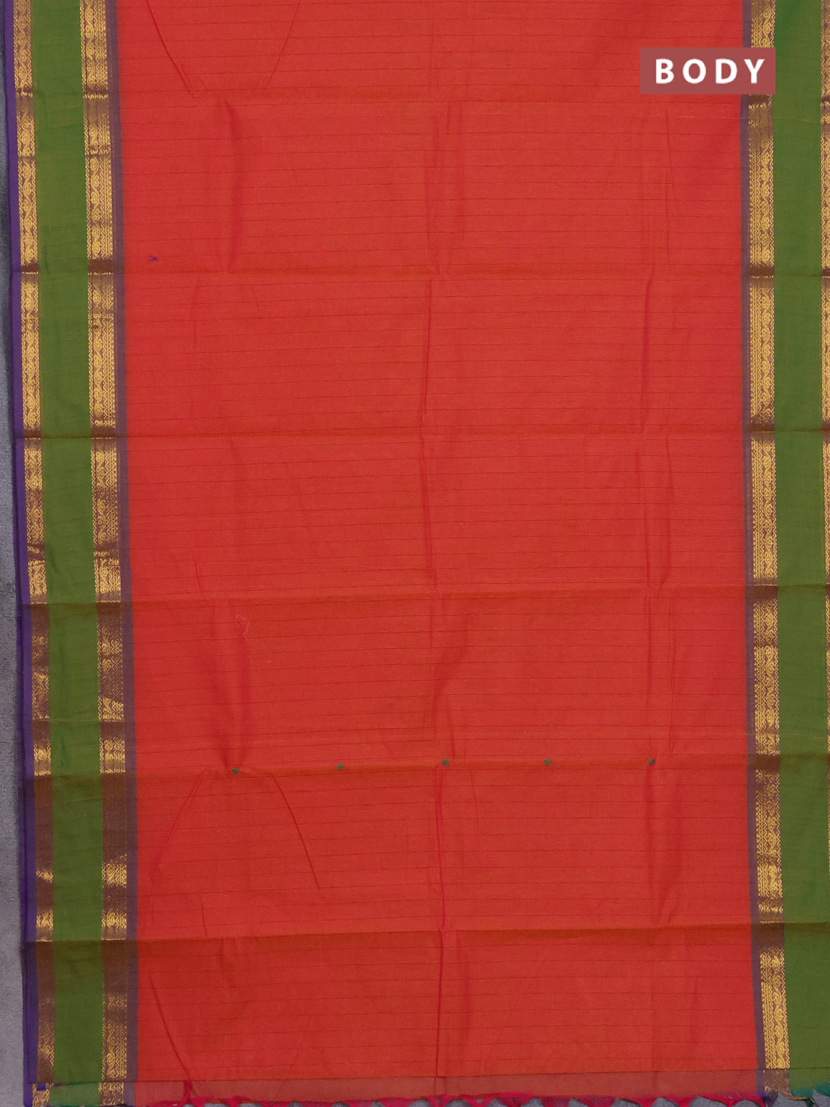 Chettinad cotton saree dual shade of orange and green with allover checked pattern and rattapet zari woven border