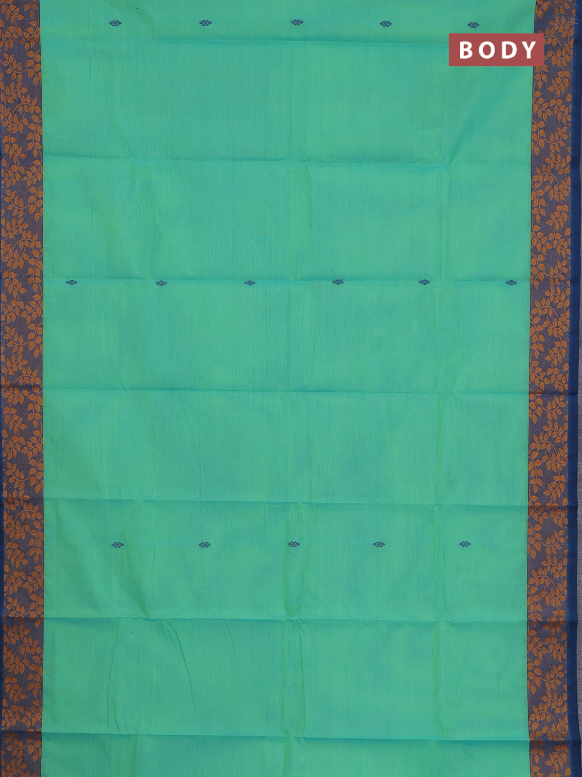 Chettinad cotton saree light green and peacock blue with thread woven buttas and leaf design border