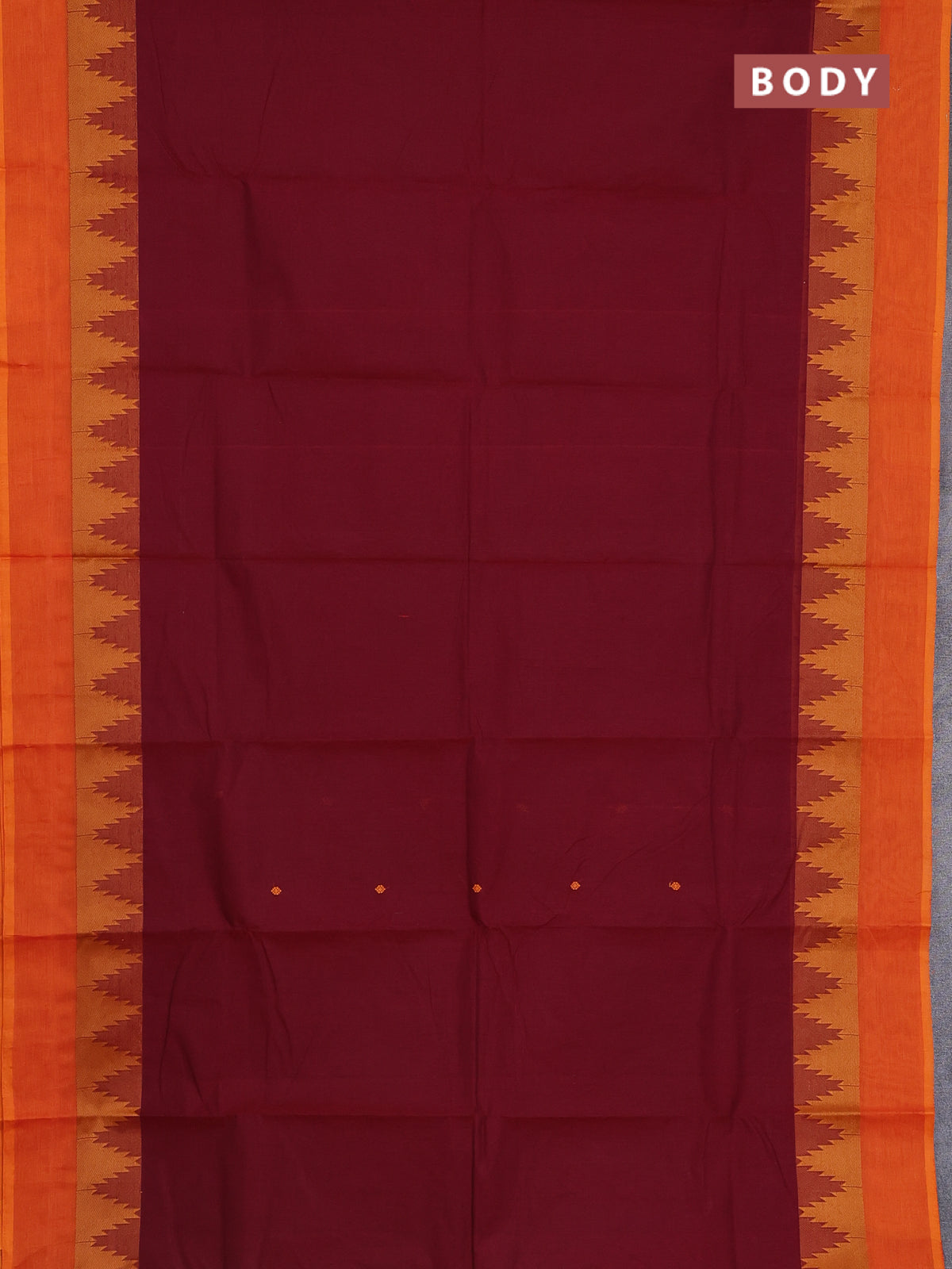 Chettinad cotton saree maroon and orange with thread woven buttas and temple thread woven simple border