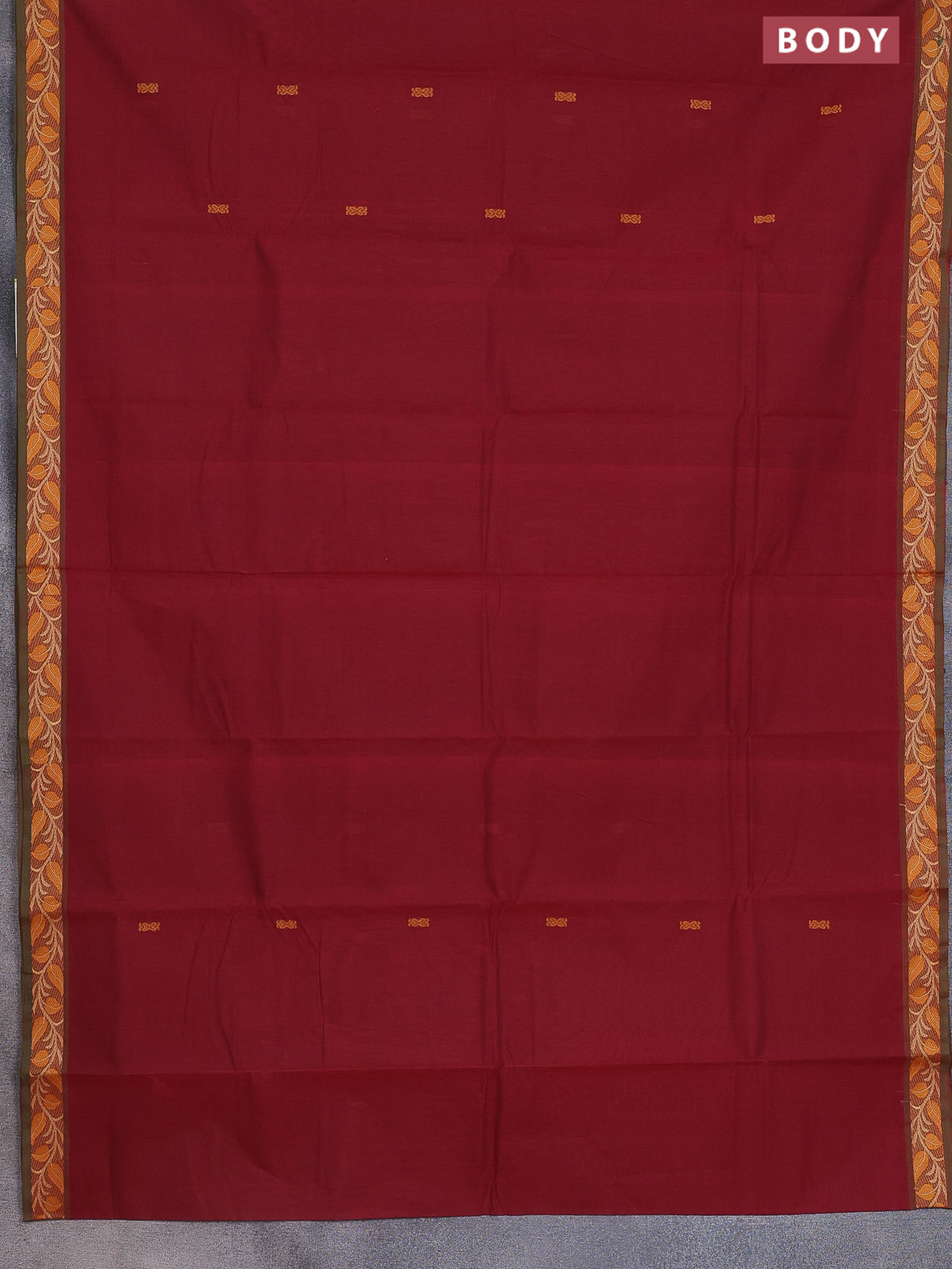 Chettinad cotton saree maroon and sap green with thread woven buttas and thread woven border
