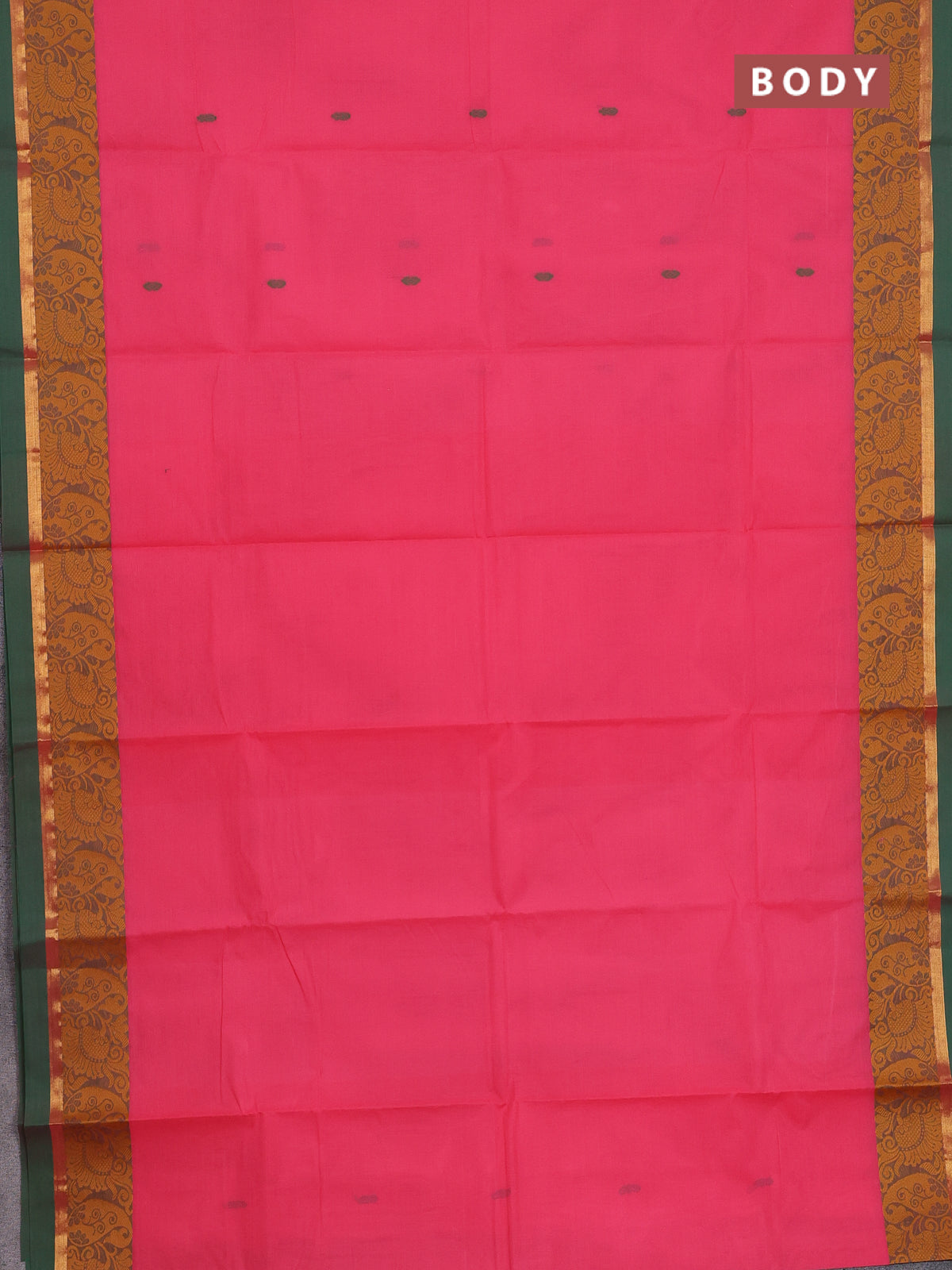 Chettinad cotton saree peach pink and green with thread woven buttas and thread & zari woven border