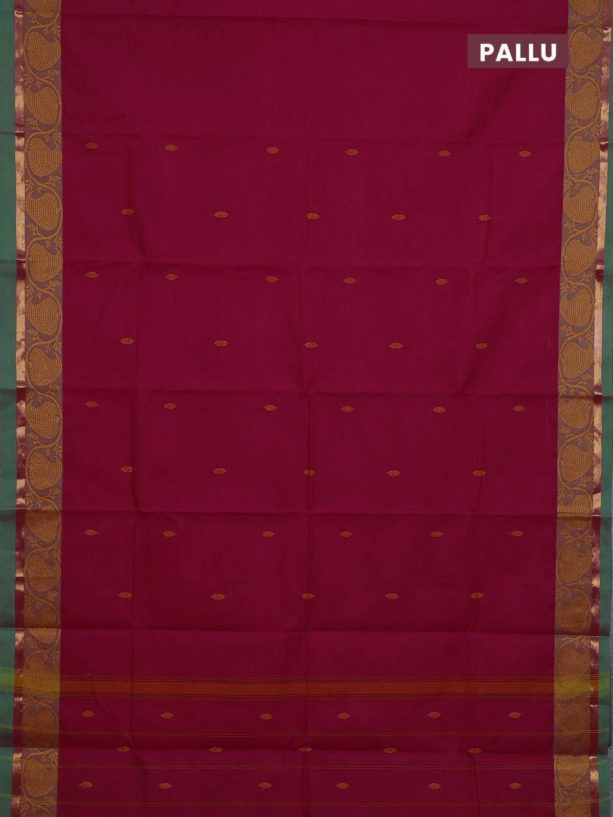 Chettinad cotton saree pink and green with thread woven buttas and thread & zari woven border