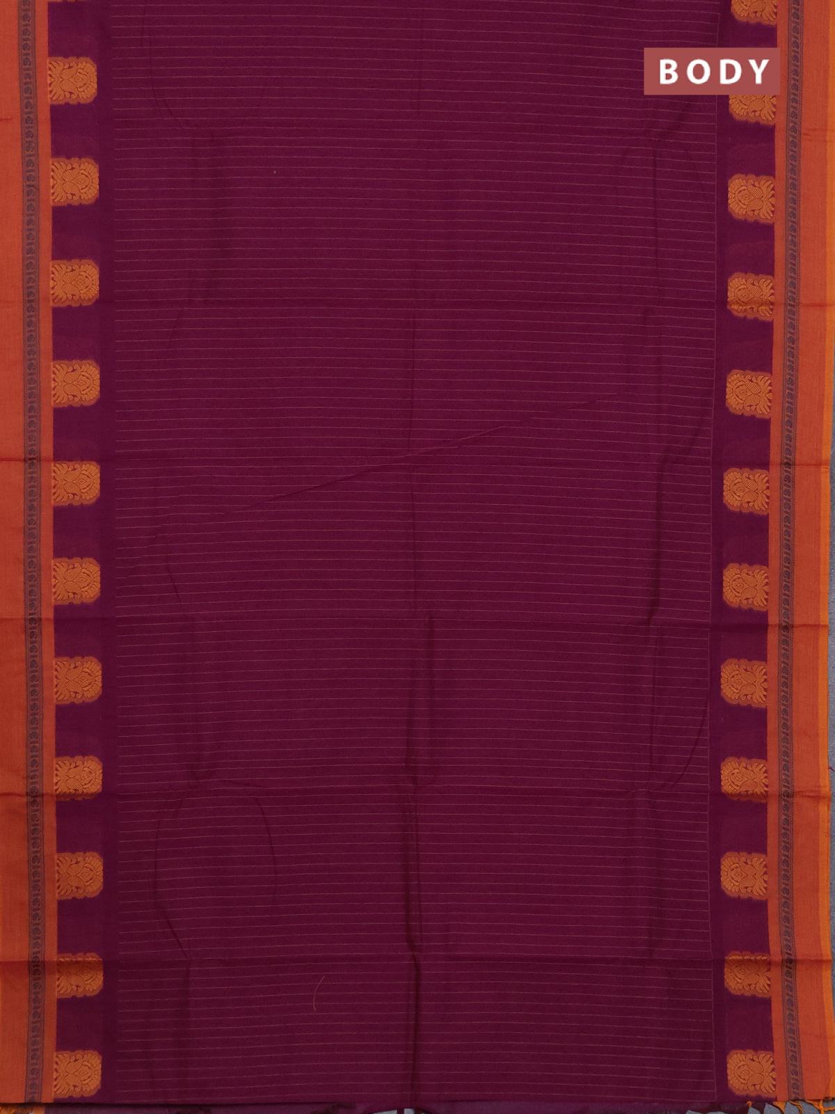 Chettinad cotton saree purple and mustard shade with stripes pattern and thread woven butta border