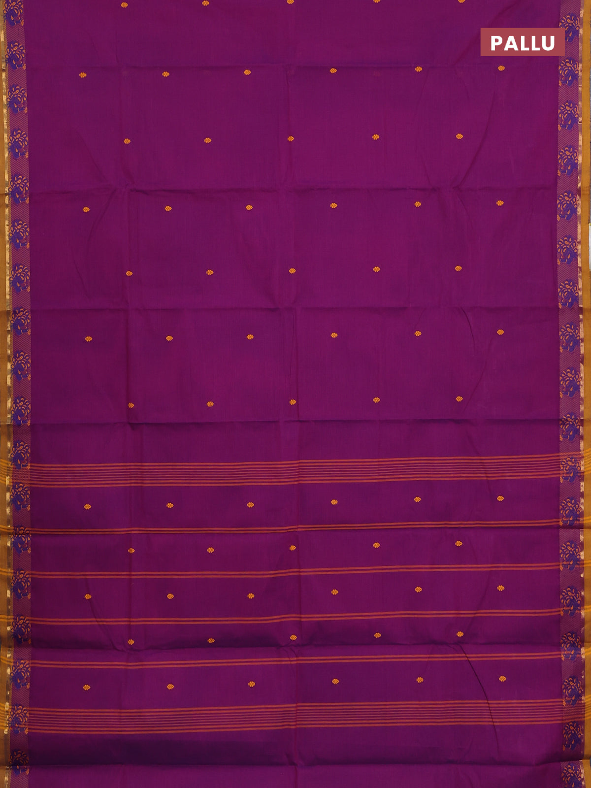 Chettinad cotton saree violet and dark mustard with thread woven buttas and thread woven border