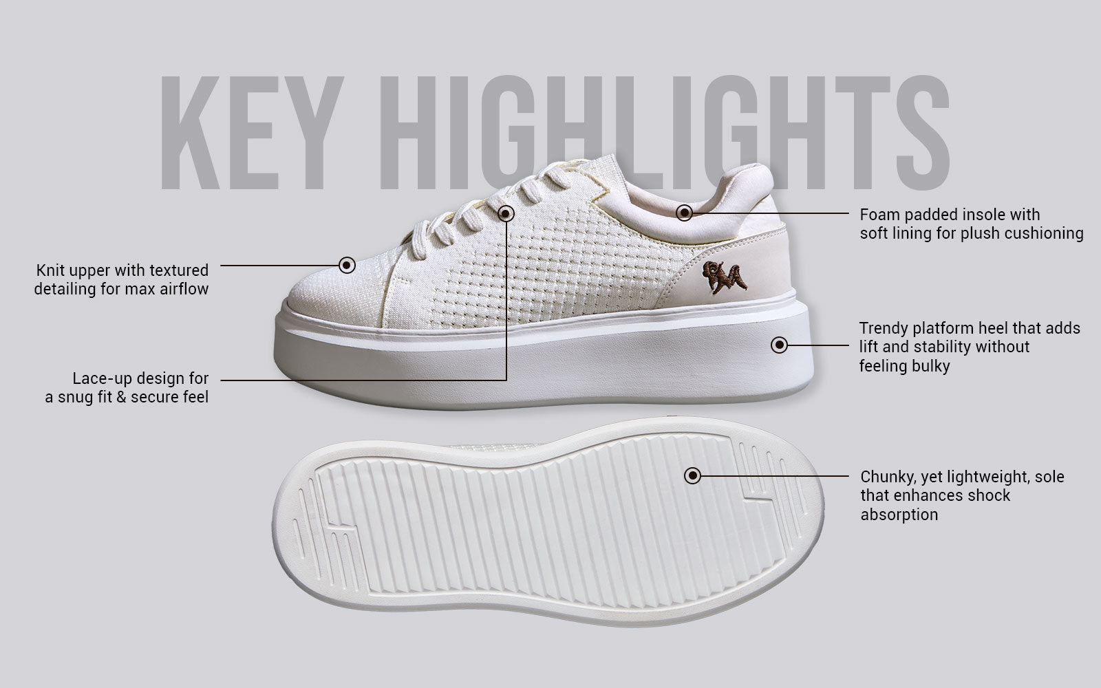 Chunky shoes are having their main character moment - and these lace-up’s totally understood the assignment. With a knit upper that feels like a breath of fresh air, a platform heel that gives you just the right lift, and a grippy sole that keeps every step steady, they’re built for strutting, strolling, and all the things in between. Foam-cushioned insole seals the deal - because fashion’s favorite flex should feel as good as it looks.