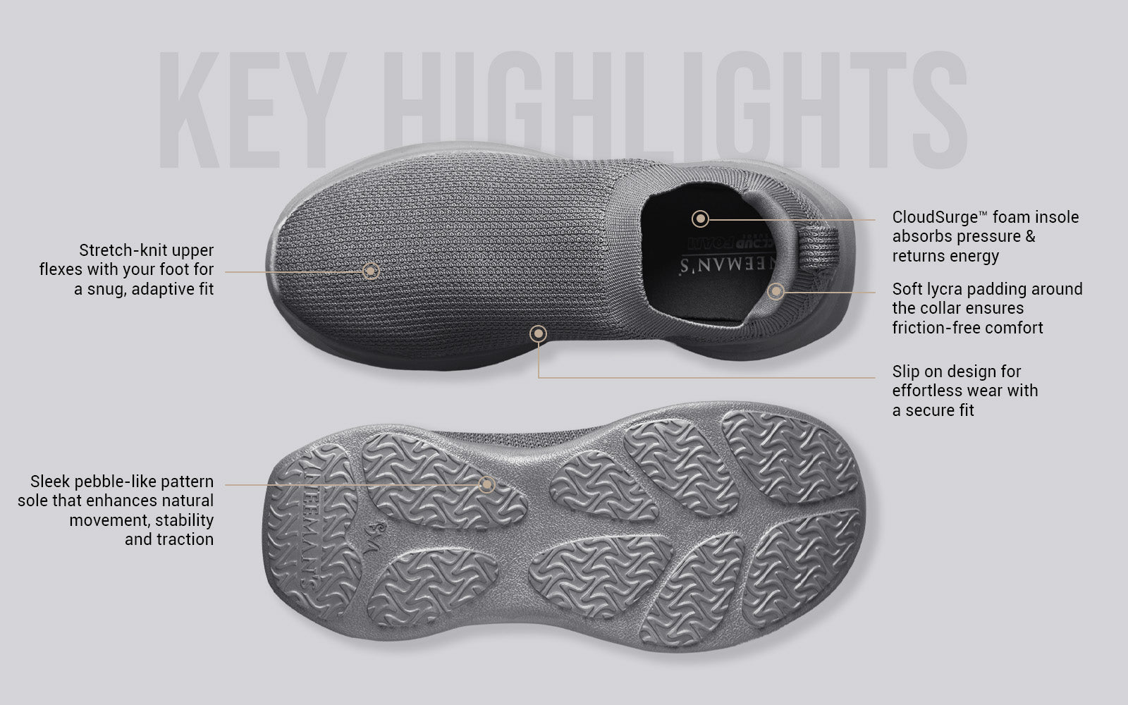 They’re called Cloud Flex for more reasons than one! Soft as clouds, with a stretch-knit upper that moves naturally with your foot, and a cushioned pebble-pattern sole that's contoured to your foot shape. Add a padded lining that hugs you in all-day ease, and you’ll realize life never really needed laces.