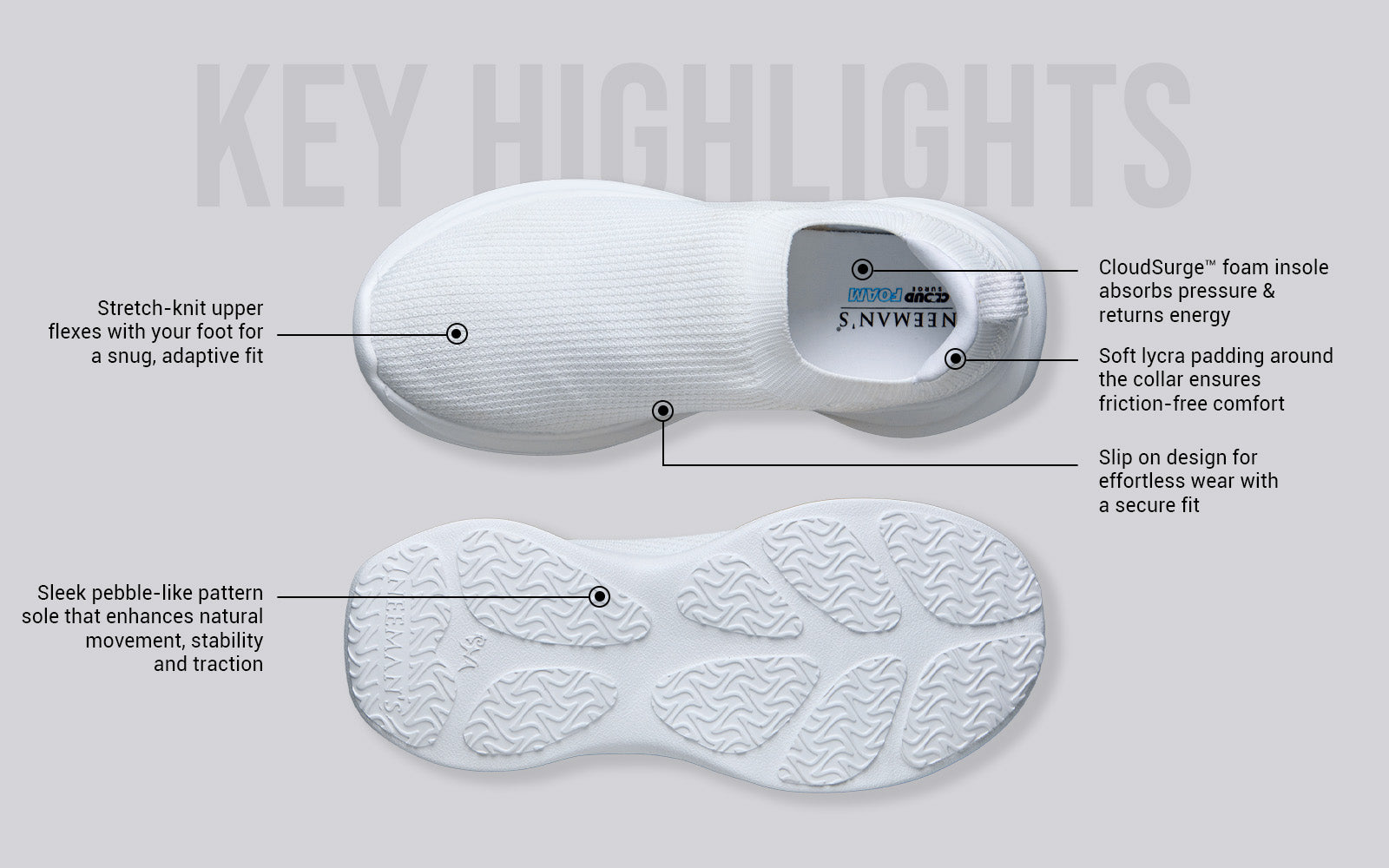 They’re called Cloud Flex for more reasons than one! Soft as clouds, with a stretch-knit upper that moves naturally with your foot, and a cushioned pebble-pattern sole that's contoured to your foot shape. Add a padded lining that hugs you in all-day ease, and you’ll realize life never really needed laces.