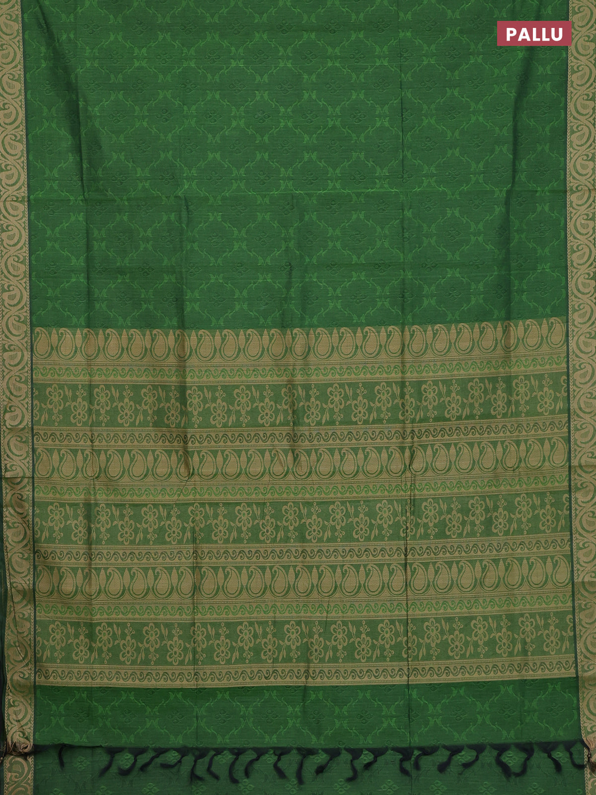 Coimbatore cotton saree green and sandal with allover self emboss and thread woven border
