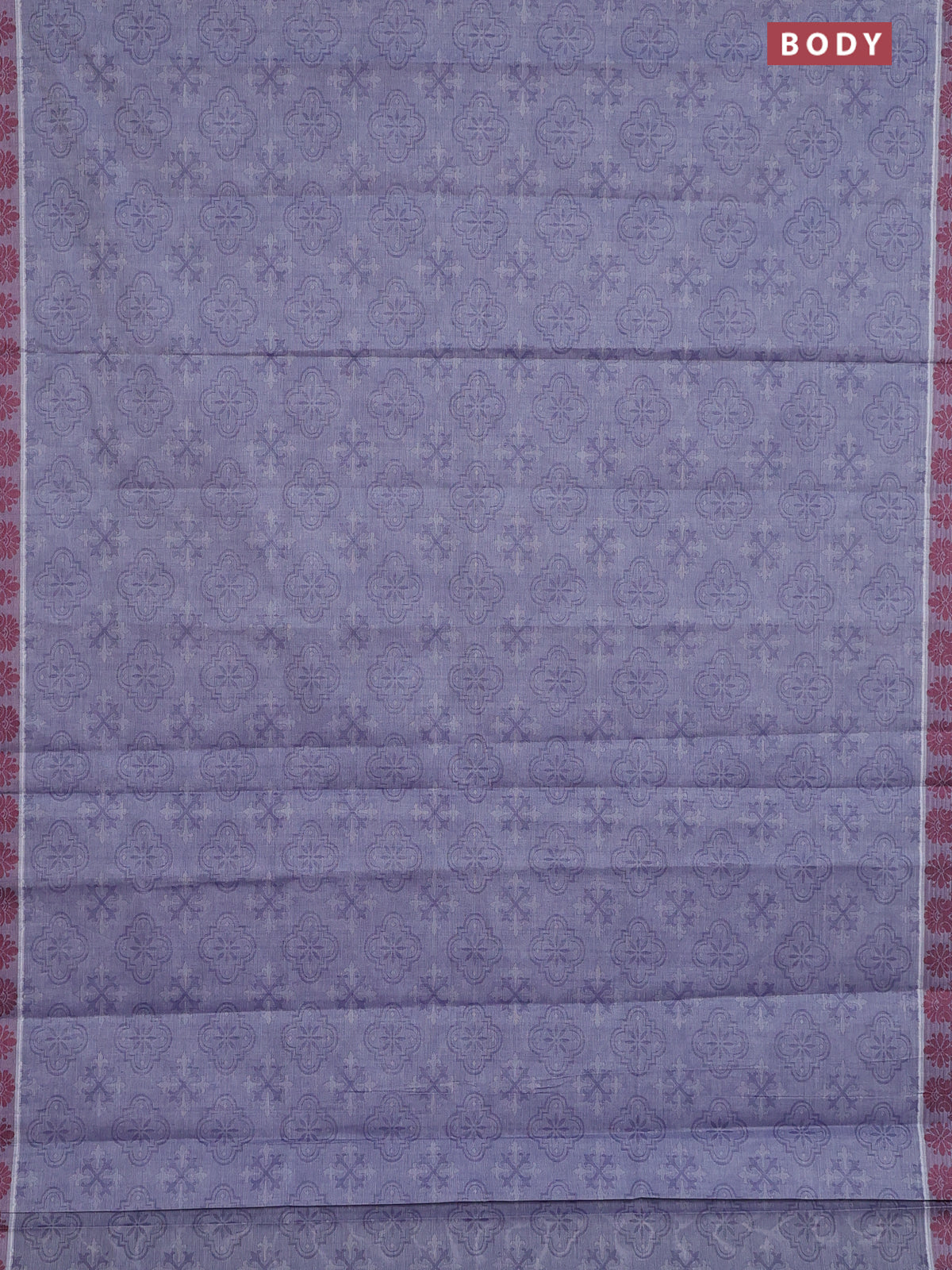 Coimbatore cotton saree greyish blue and maroon with allover self emboss and thread woven border