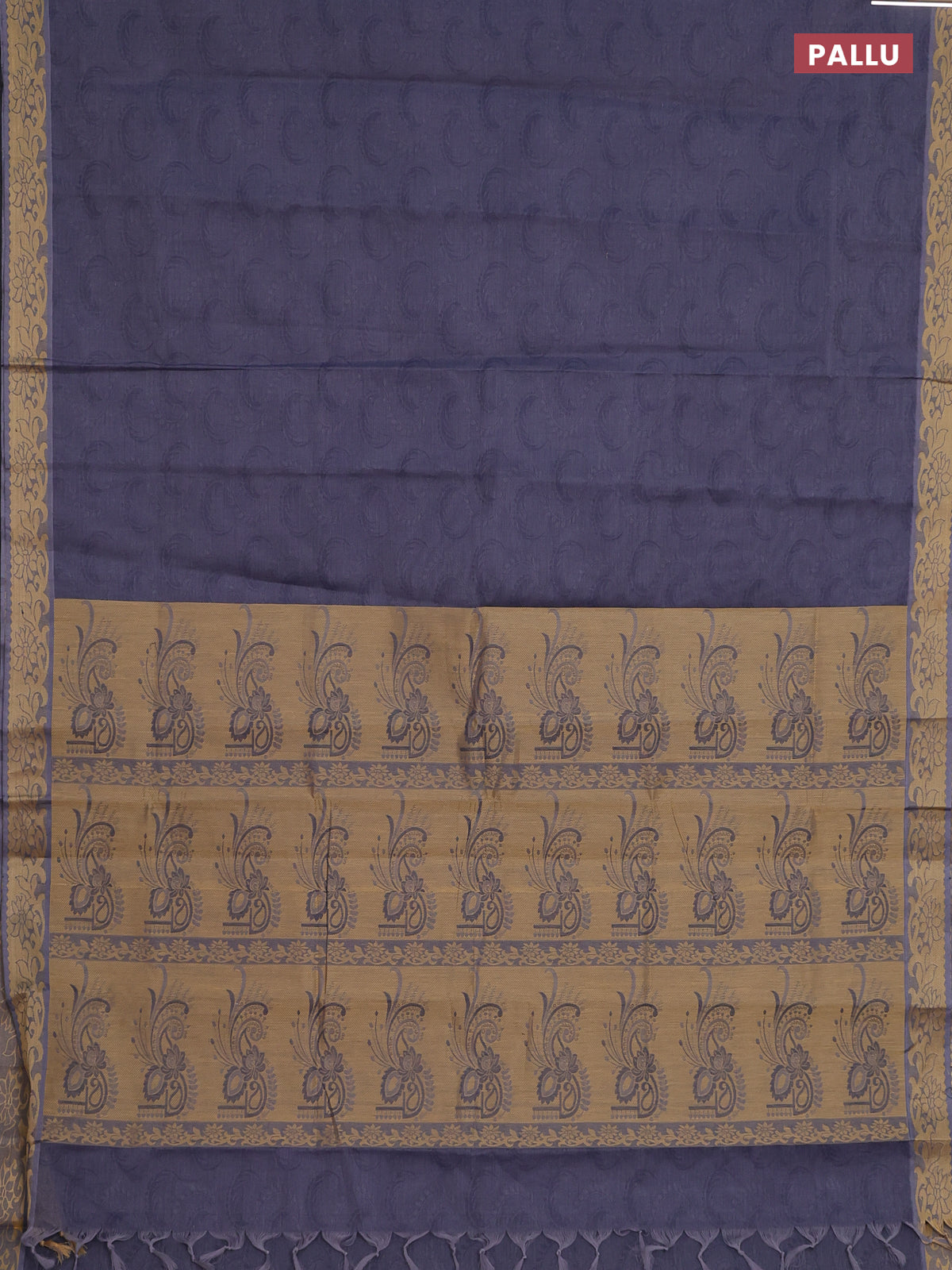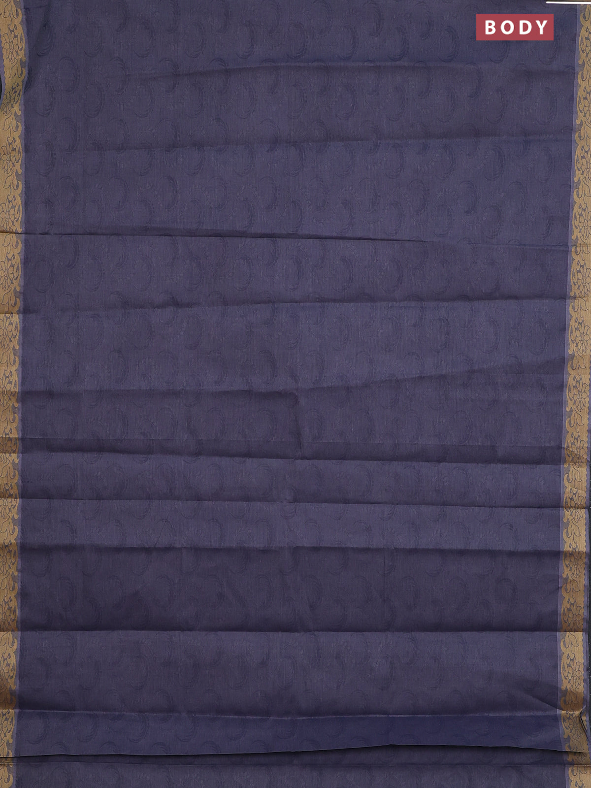 Coimbatore cotton saree greyish blue and sandal with allover self emboss and thread woven border