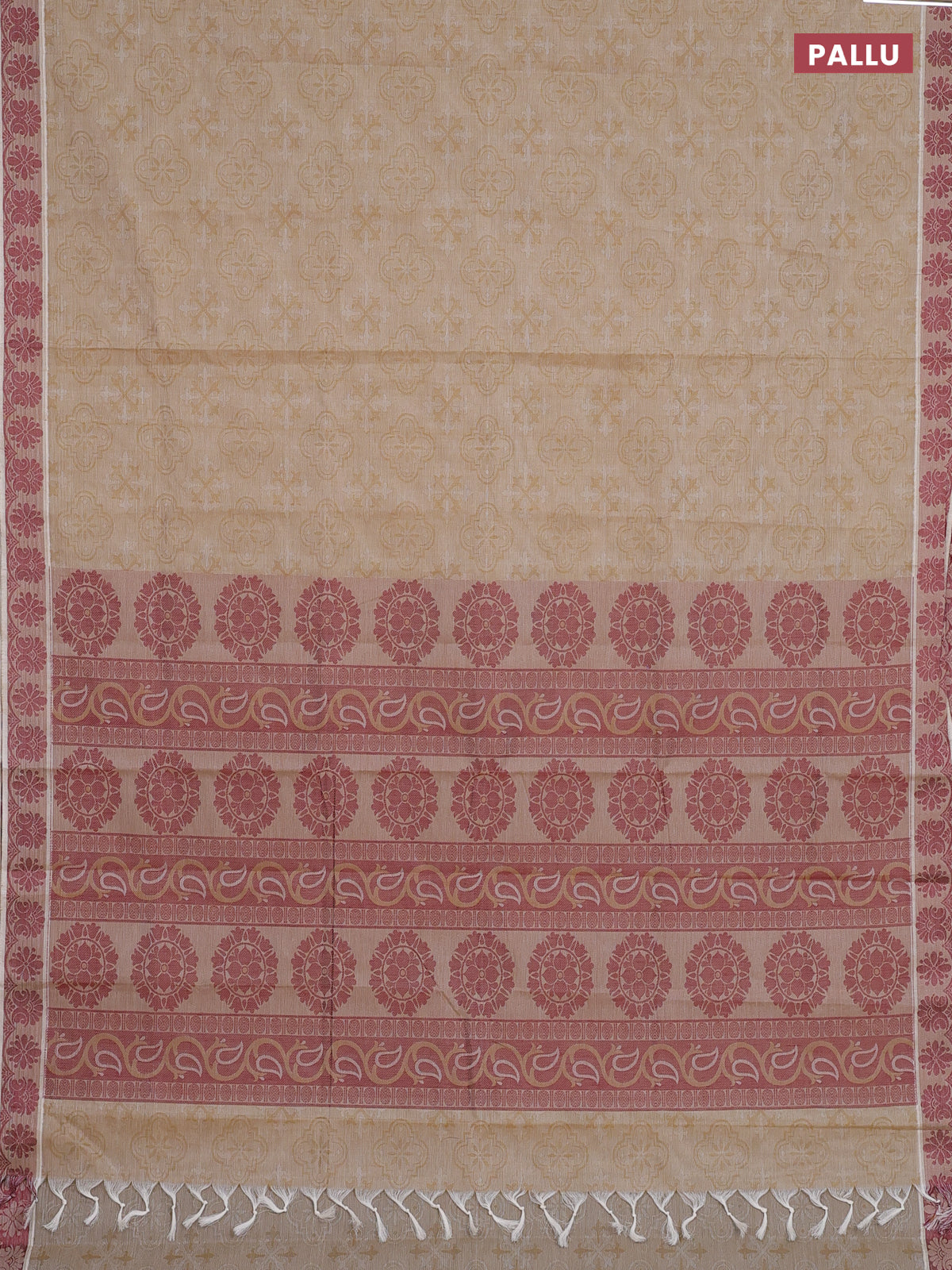 Coimbatore cotton saree khaki shade and maroon with allover self emboss and thread woven border