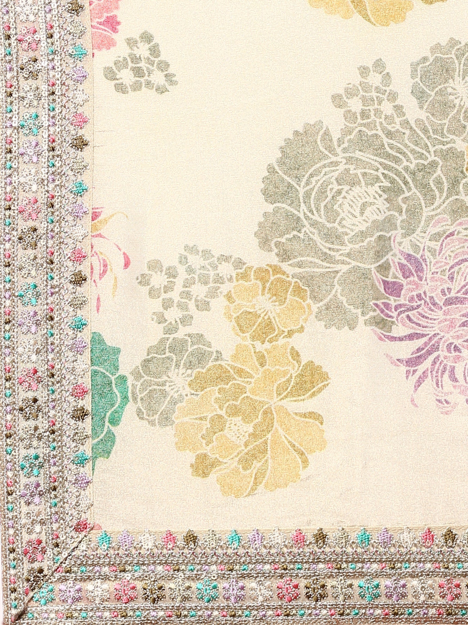 Cream crepe hand embroidered three piece suit set with Floral dupatta