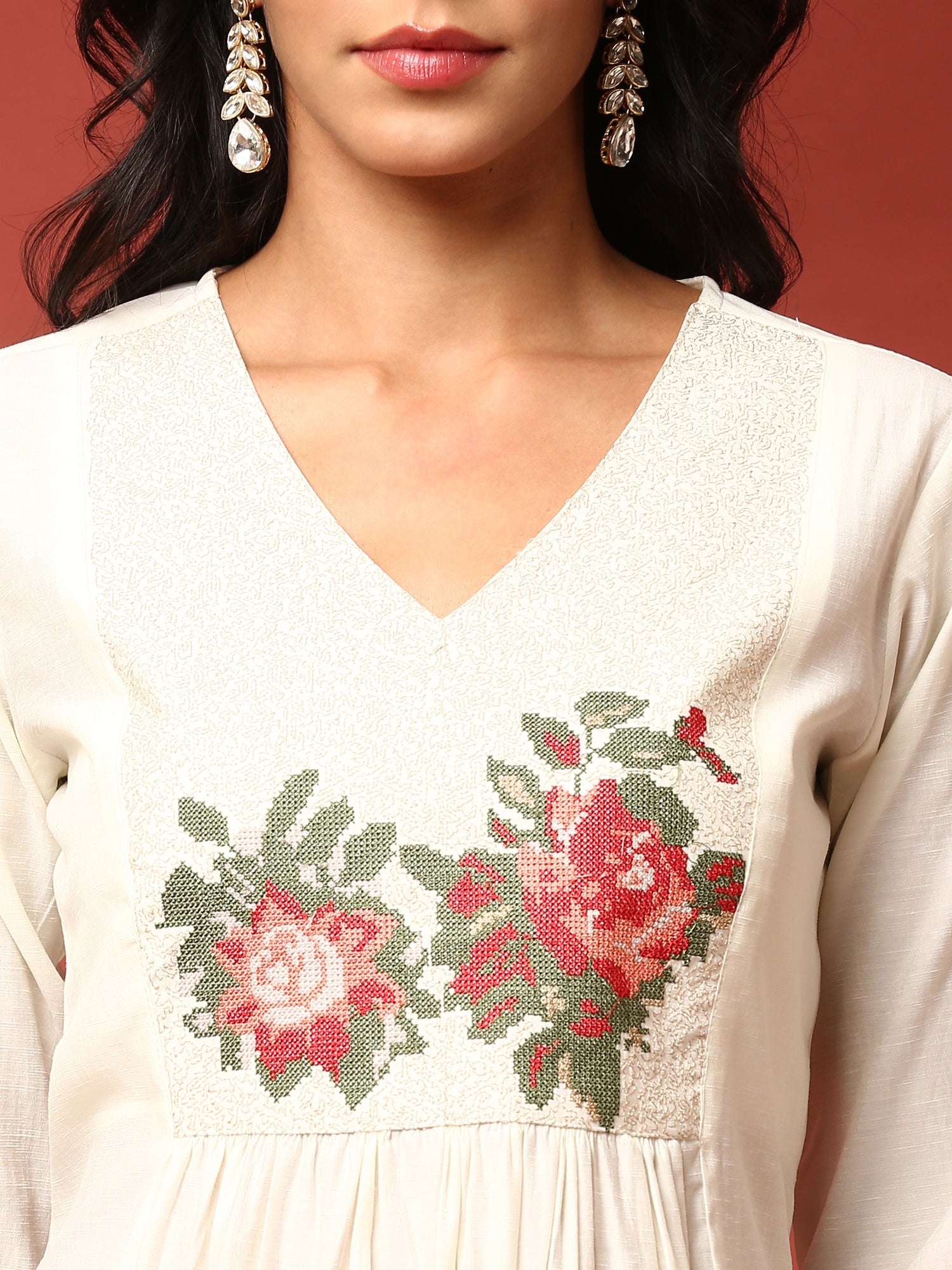 Experience timeless elegance with this Cream Linen Fabric Thread Work three-piece suit set. Crafted from breathable linen, it offers comfort and style for all-day wear. The intricate thread work adds a subtle touch of sophistication, making it perfect for both formal occasions and festive gatherings. This versatile set ensures you look polished while feeling relaxed.
