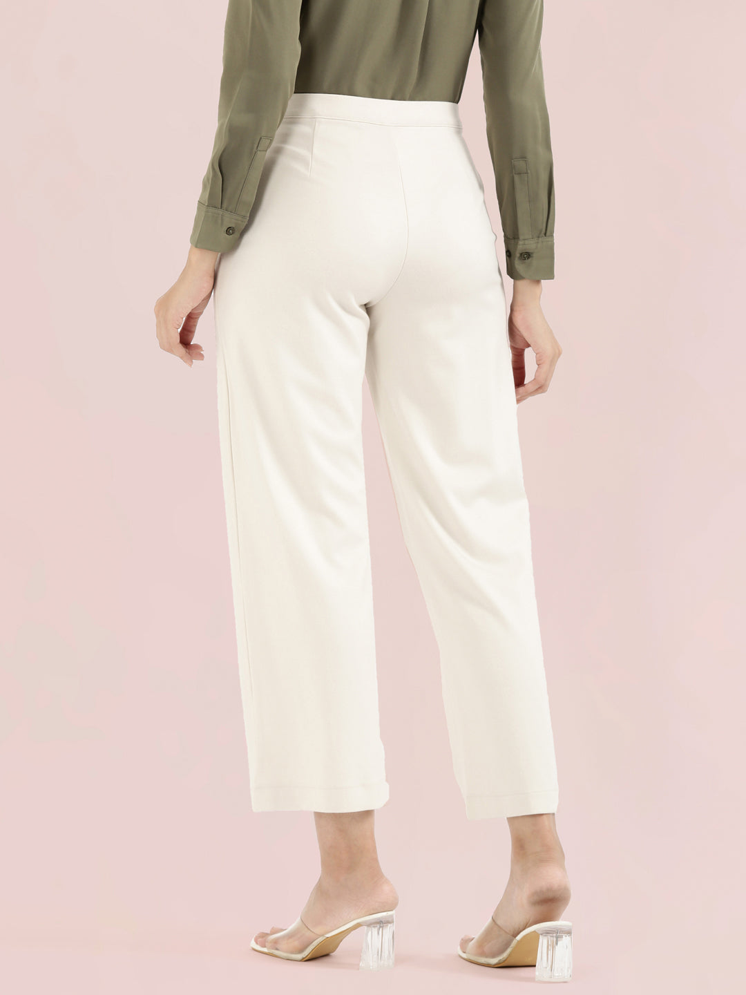 Be it a kurti or a top, these Silver Grey Ponte Pants, with an elasticised waistband it fits the bill for every look. A pair of mid-rise Rayon, Nylon & Spandex wide ponte pants with an elasticised waistband, & a relaxed comfy fit