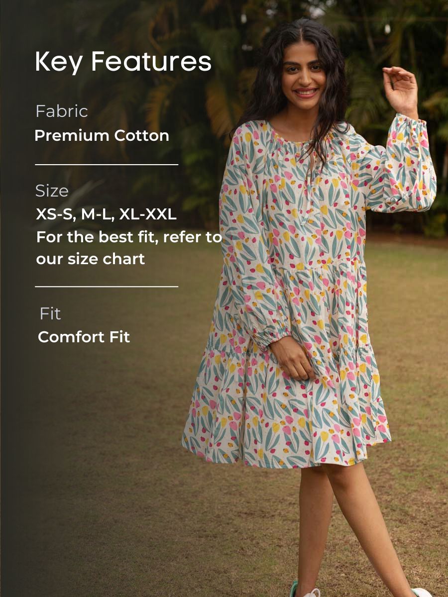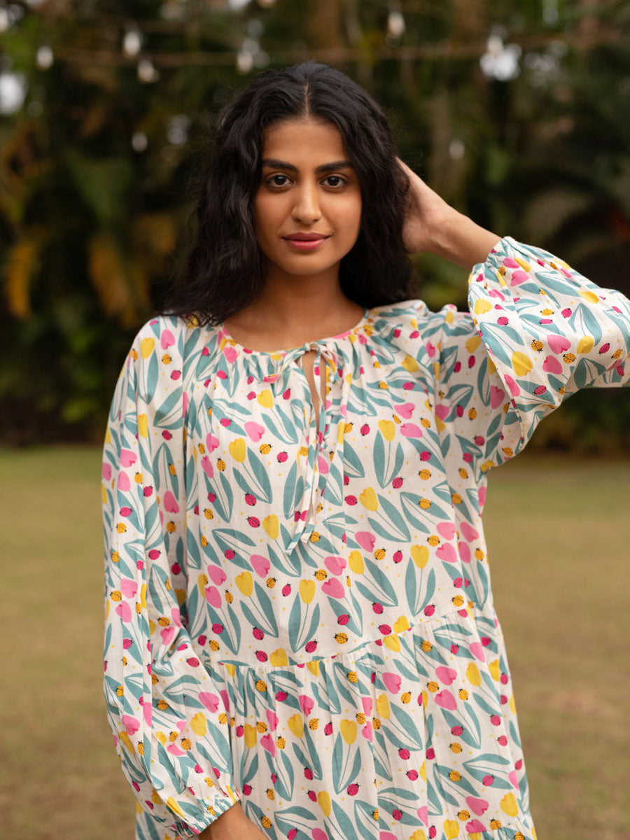 Dancing Tulips Balloon Sleeve Dress
