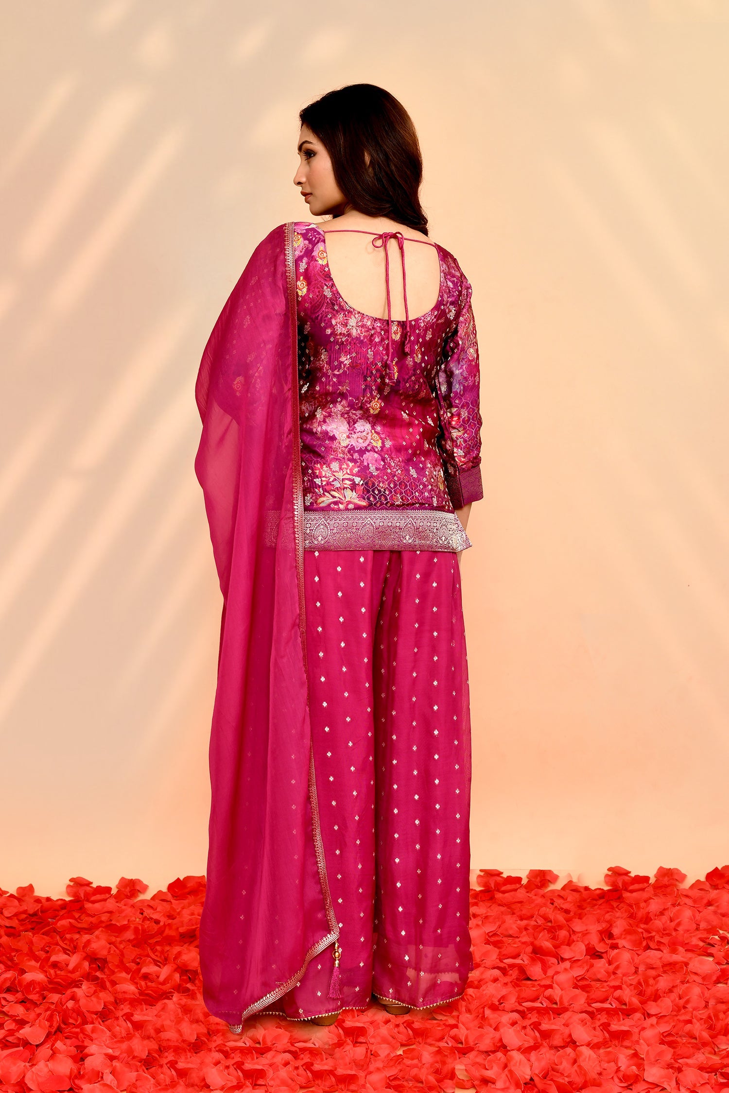 Deep Pink Georgette Floral Sharara Set