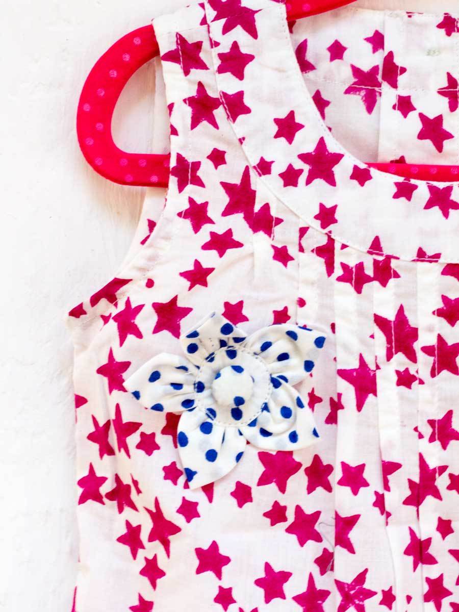 Deep Pink Starry Sky PinTuck Block Printed Cotton Frock