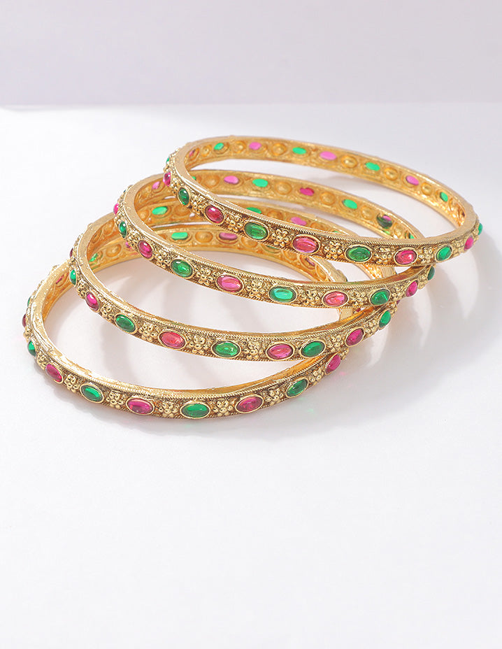Premium matt-plated bangles with Ruby & Green Kempu stones. A perfect mix of tradition and style for any occasion!